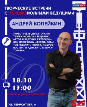 Мы рады пригласить вас на творческую встречу с телевизионными ведущими ГТРК «Иртыш», которая пройдет в Омском Доме художника!18 октября в 13:00 вы сможете пообщаться с популярными ведущими Андреем Копейкиным и Еленой Беляевой.По всем...