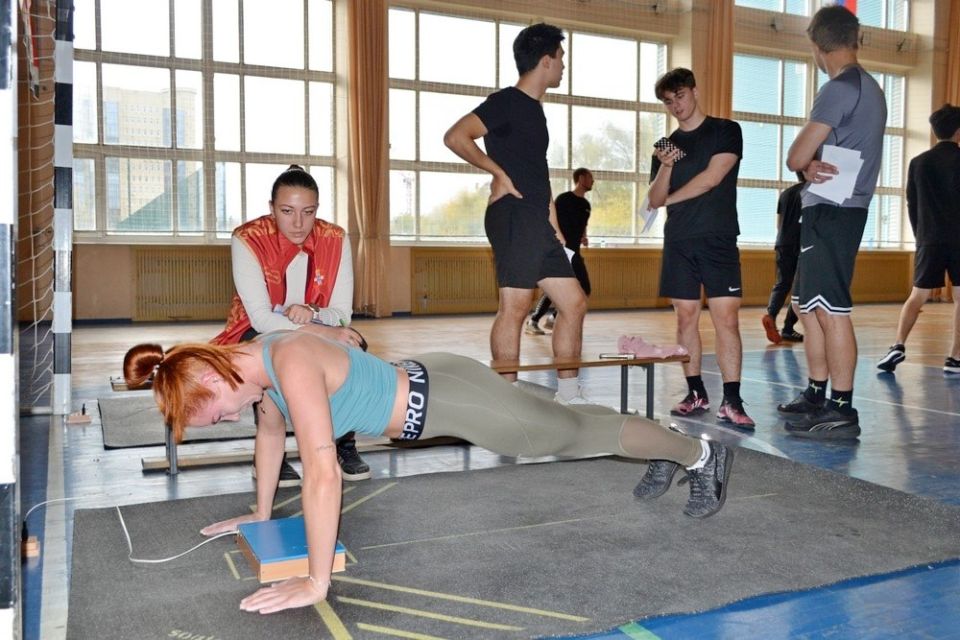 Участники выполнили подтягивания, отжимания, наклоны вперед на гимнастической скамье, поднимания туловища из положения лежа, челночный бег 3х10 м, прыжки в длину с места, бег на 30 м