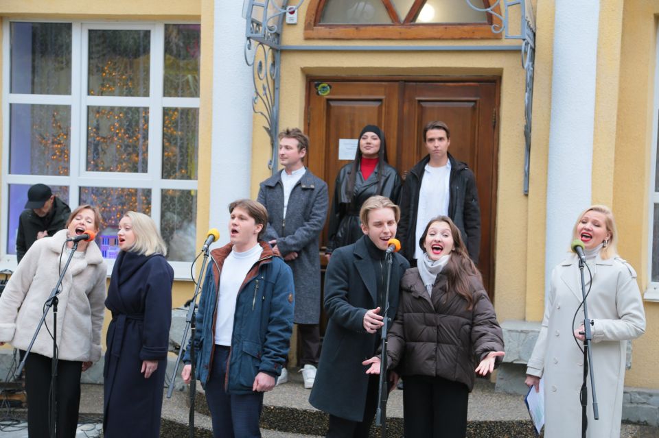 Во дворике, украшенном огнями и разноцветными зонтиками, артисты пели и читали стихи. а наш фотограф Владимир Казионов запечатлел эти моменты. В объектив попали и четвероногие...
