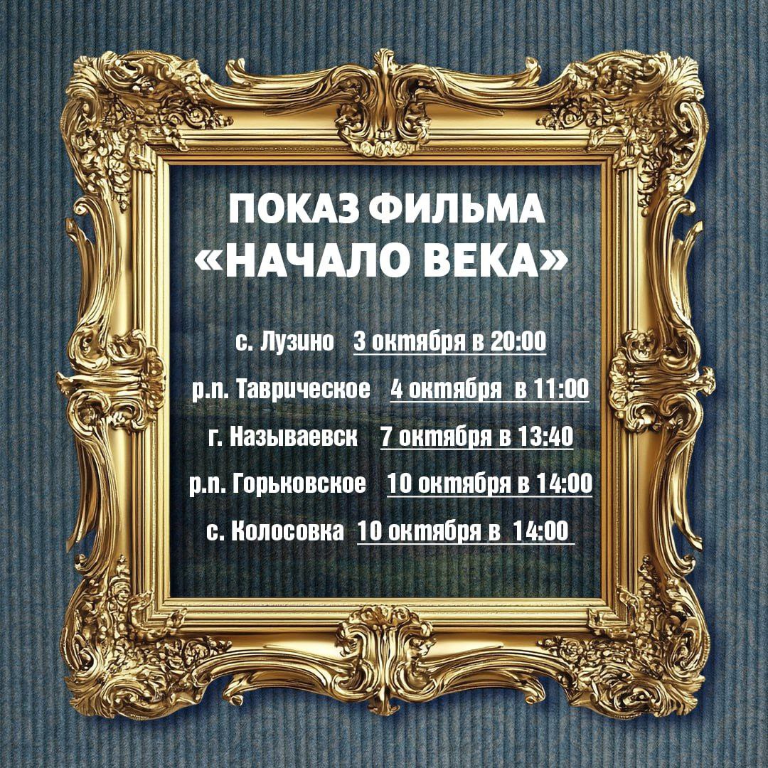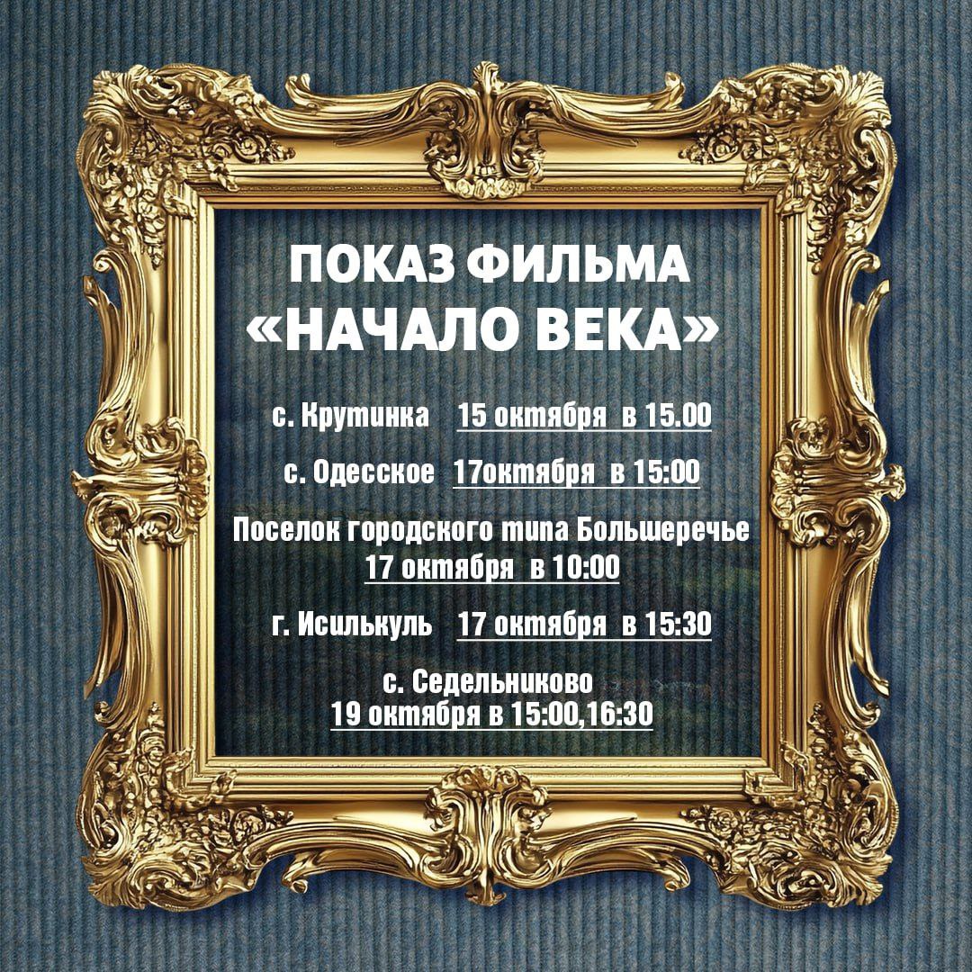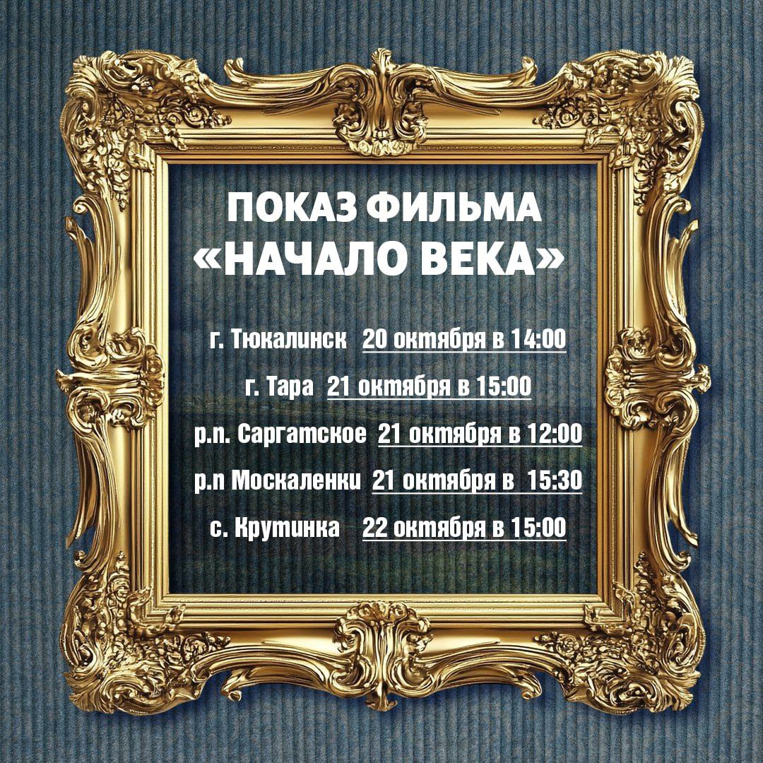 Кроме того, показы фильма «Начало века» организуют и в районах Омской области. В список вошли Называевск, Калачинск, Лузино, Нововаршавка, Исилькуль, Тара, Тюкалинск и другие.