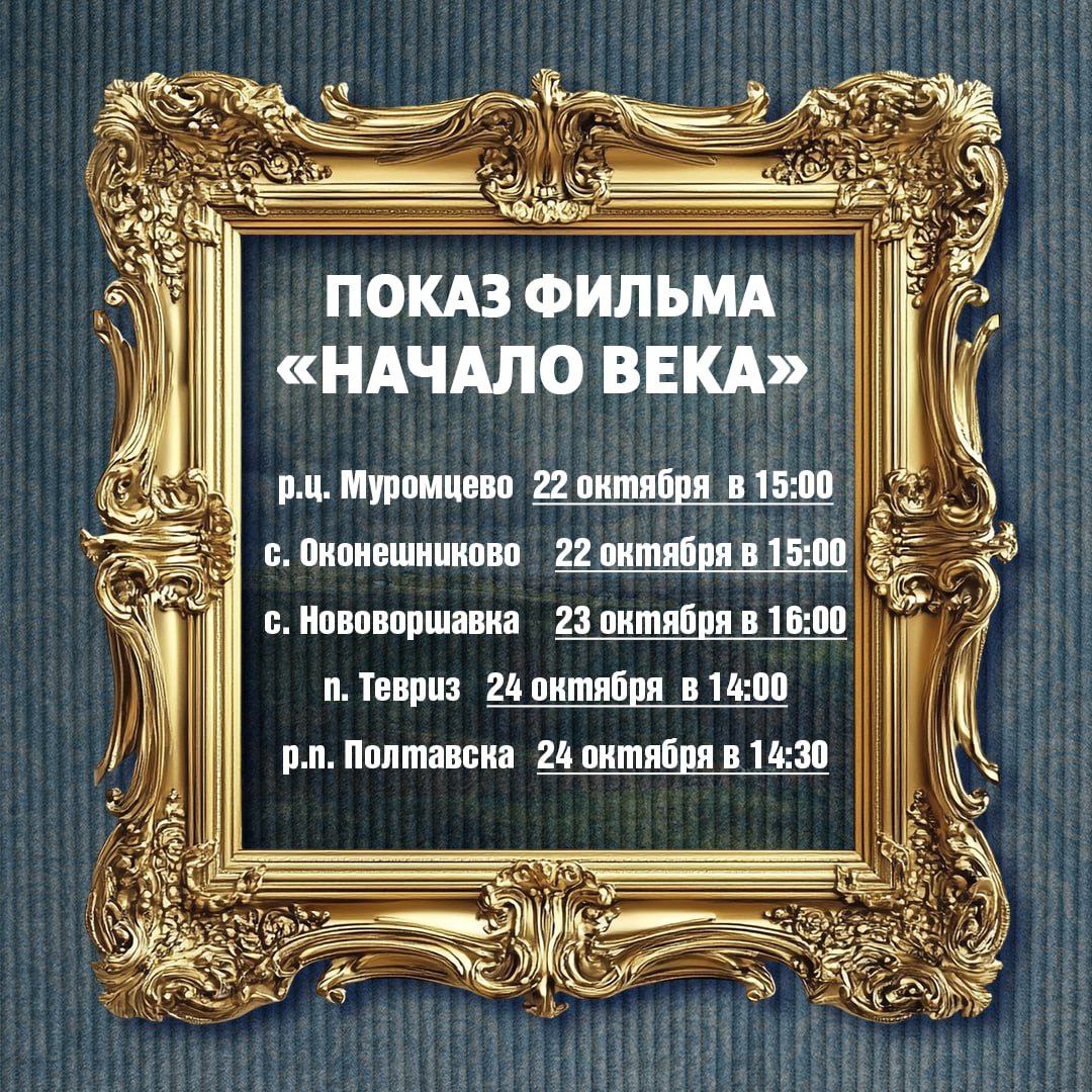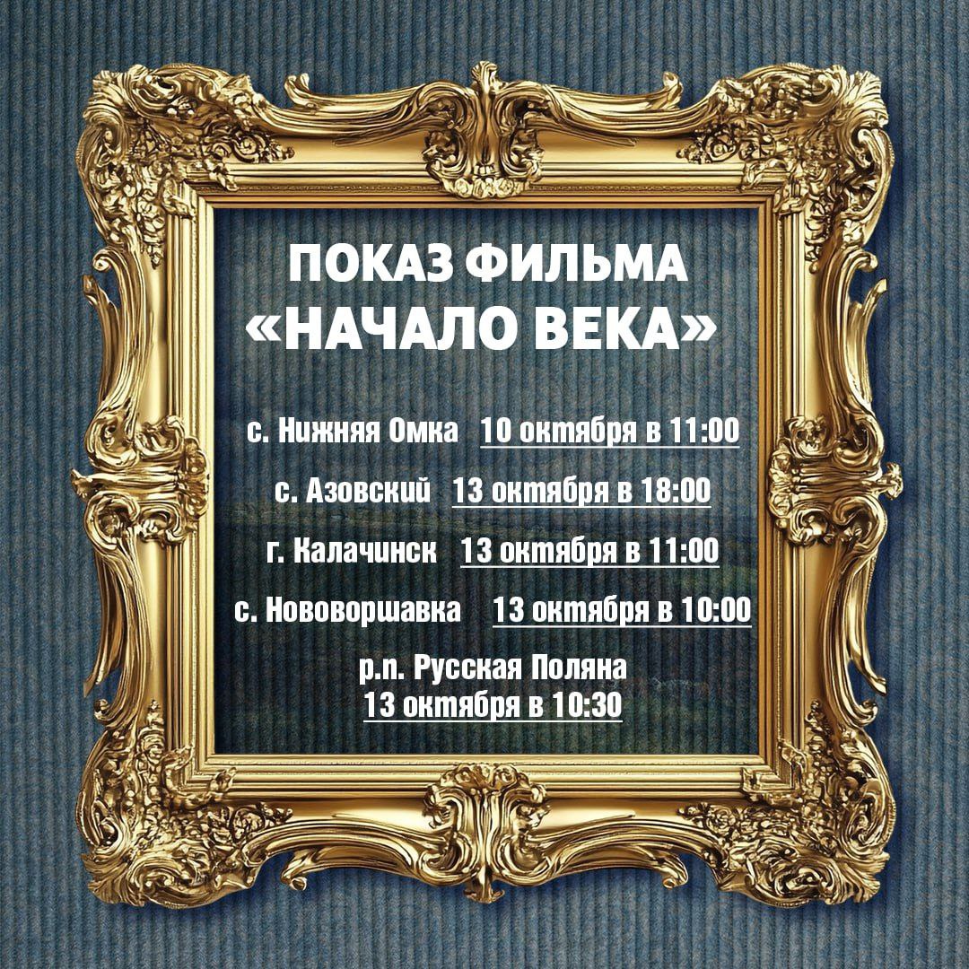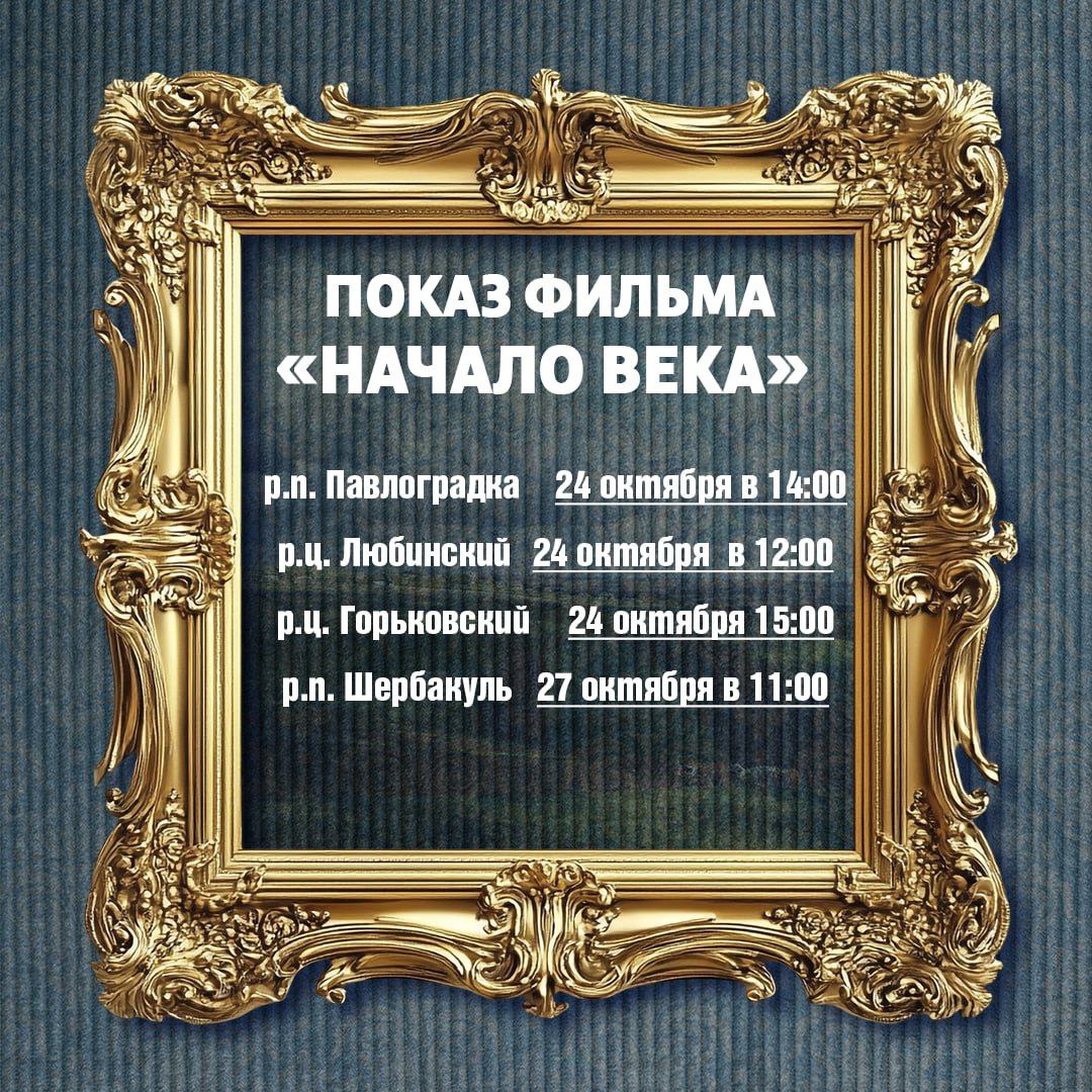 Кроме того, показы фильма «Начало века» организуют и в районах Омской области. В список вошли Называевск, Калачинск, Лузино, Нововаршавка, Исилькуль, Тара, Тюкалинск и другие.