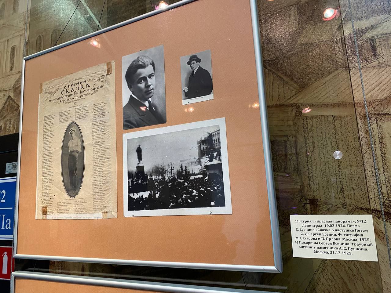 Посетители увидели прижизненные издания и публикации поэта, редкие фотографии, прядь волос, посмертную маску и колбы с землей с могилы Сергея Есенина, а также оригиналы писем Августы Миклашевской, Шагане Тальян и других людей, связанный судьбой с поэтом.