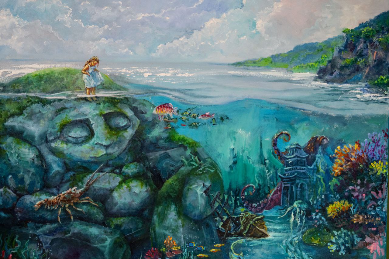 Придуманные на холсте мифы существуют по правилам художниц, уводя зрителя в мир добрых волшебных сказок, меняя мир вокруг и наполняя пространство светом чудесных историй.