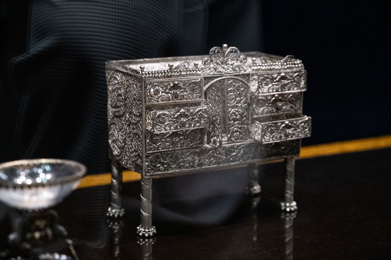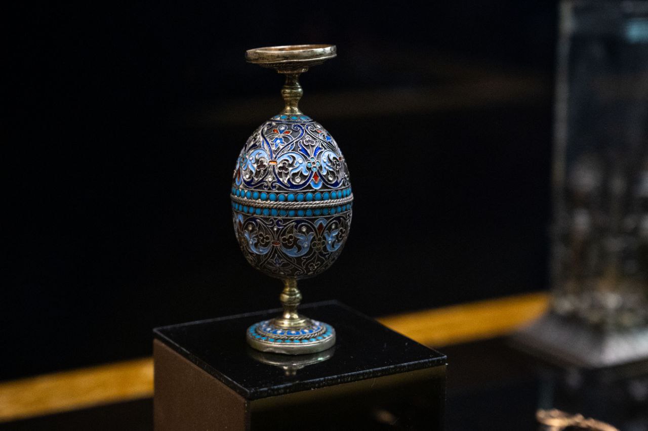 Ювелирное искусство от скифов до Фаберже представлено в особо охраняемом зале. Здесь можно увидеть предметы издрагоценных металлов икамней — от загадочных скифо-сибирских древностей из курганов Омского Прииртышья до миниатюрного каменного зоопарка знаменитой на весь мир фирмы Фаберже.