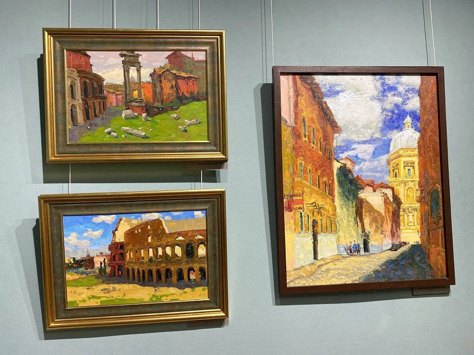 Большинство работ - 2025 года. Первые зрители уже увидели монументальные и экспрессивные полотна «Даниловский монастырь», «Покровский собор» и «Ростовский кремль», насыщенные светом «Ясный день», «Раннее утро» и «Осень», а также европейские сюжеты «Вид на собор Святой Марии», «У театра Марсело» и «Вид на Колизей».