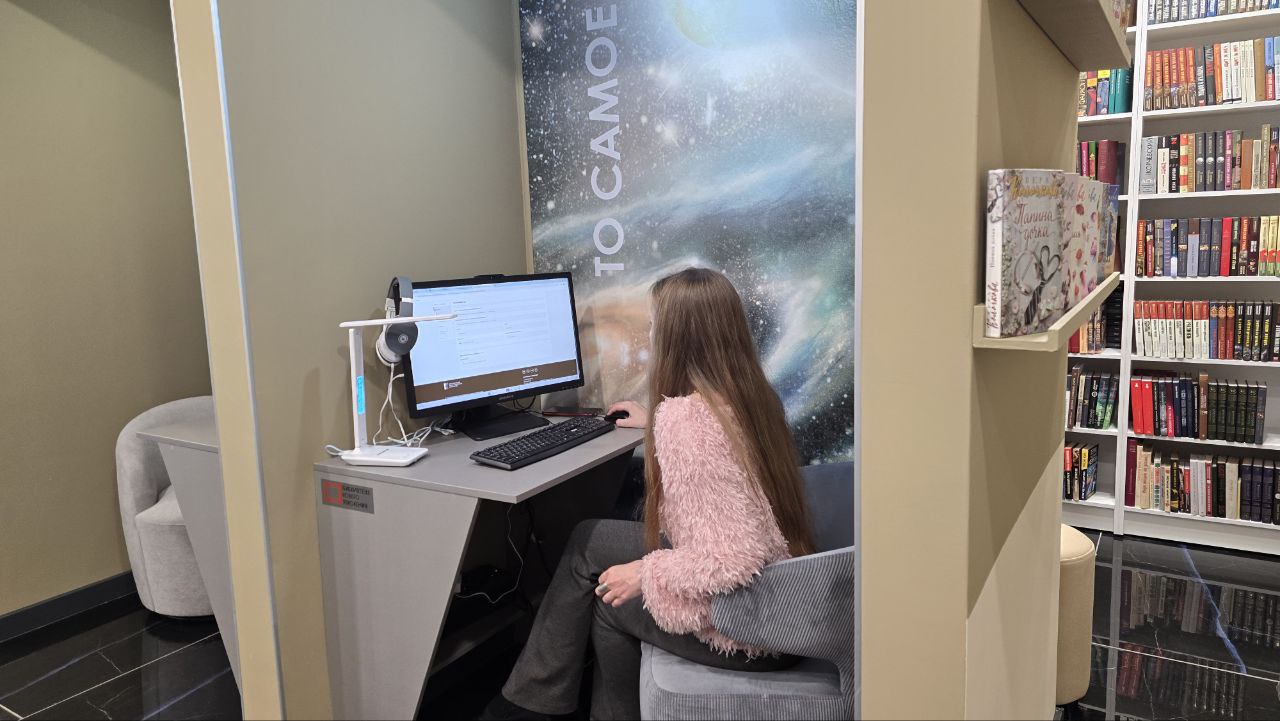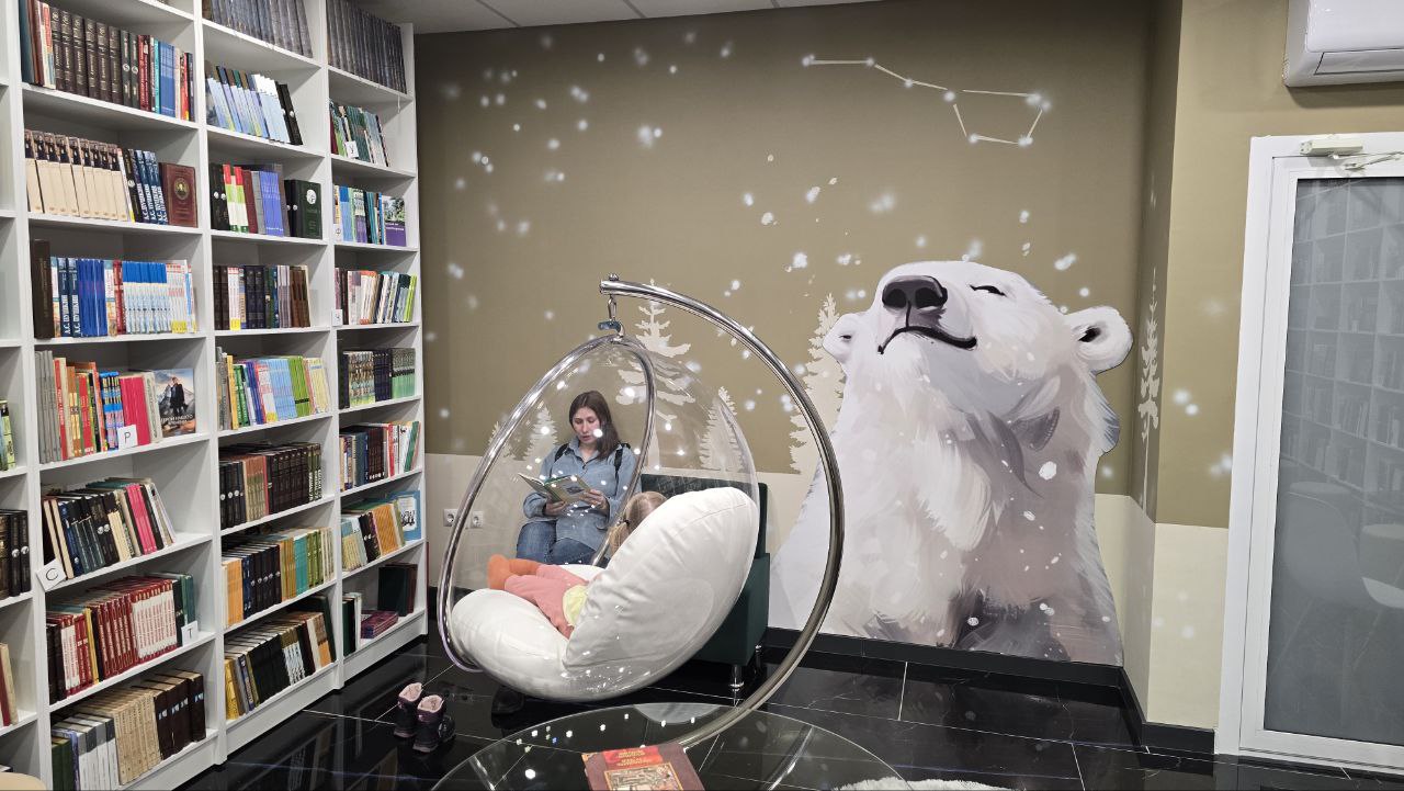 Интерактивный центр для детей и молодежи под названием «Книжная галактика» состоит из нескольких тематических пространств, среди которых залы «Малая» и «Большая Медведица» для читателей разных возрастов, переговорная «Спутник», помещение для встреч «Атмосфера» и творческая лаборатория «Меркурий». Они оснащены передовым оборудованием.