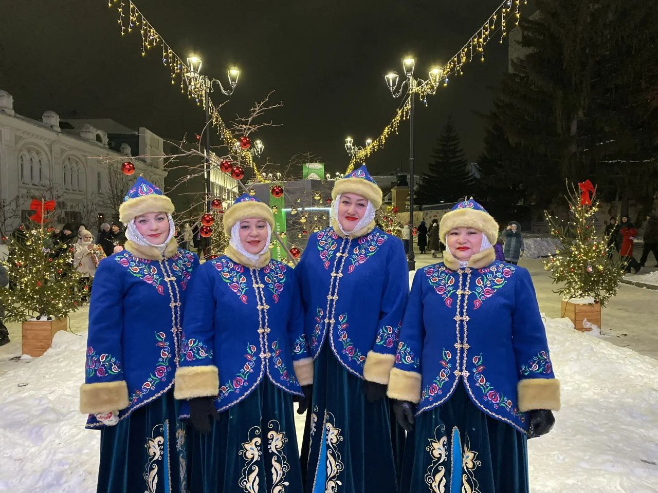 Коллективы Дома Дружбы поздравили всех с Новым годом праздничными песнями разных стран. А студенты Омского колледжа культуры и искусств устроили настоящее караоке, да непростое, а интерактивное: с ручейком и большим хороводом.