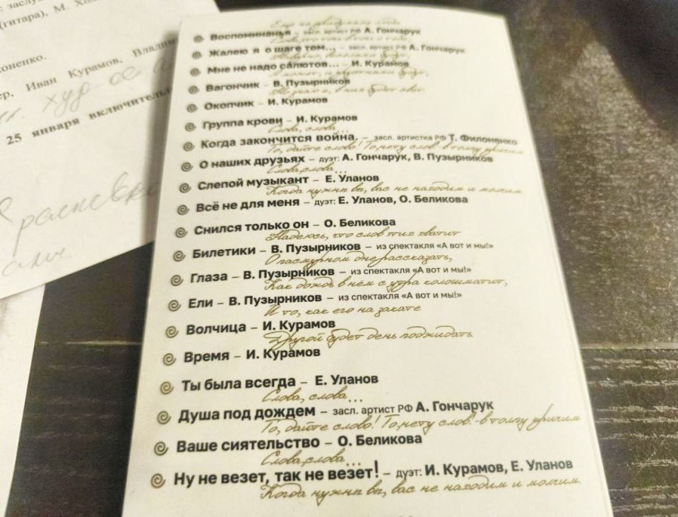 В проект вошли 19 песен на стихи Владимира Никоненко, омского поэта, в недавнем прошлом практикующего врача. Их исполнят артисты Омской драмы: Владислав Пузырников, Татьяна Филоненко, Егор Уланов, Ольга Беликова и Иван Курамов.