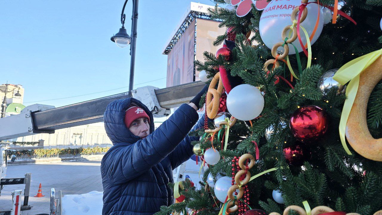 Специально к празднику компания "Яркая марка" разработала масленичную символику. Как рассказала Анна Собур, ей украсили все новогодние ели праздничной локации. Сегодня завершается украшение главного масленичного дерева.
