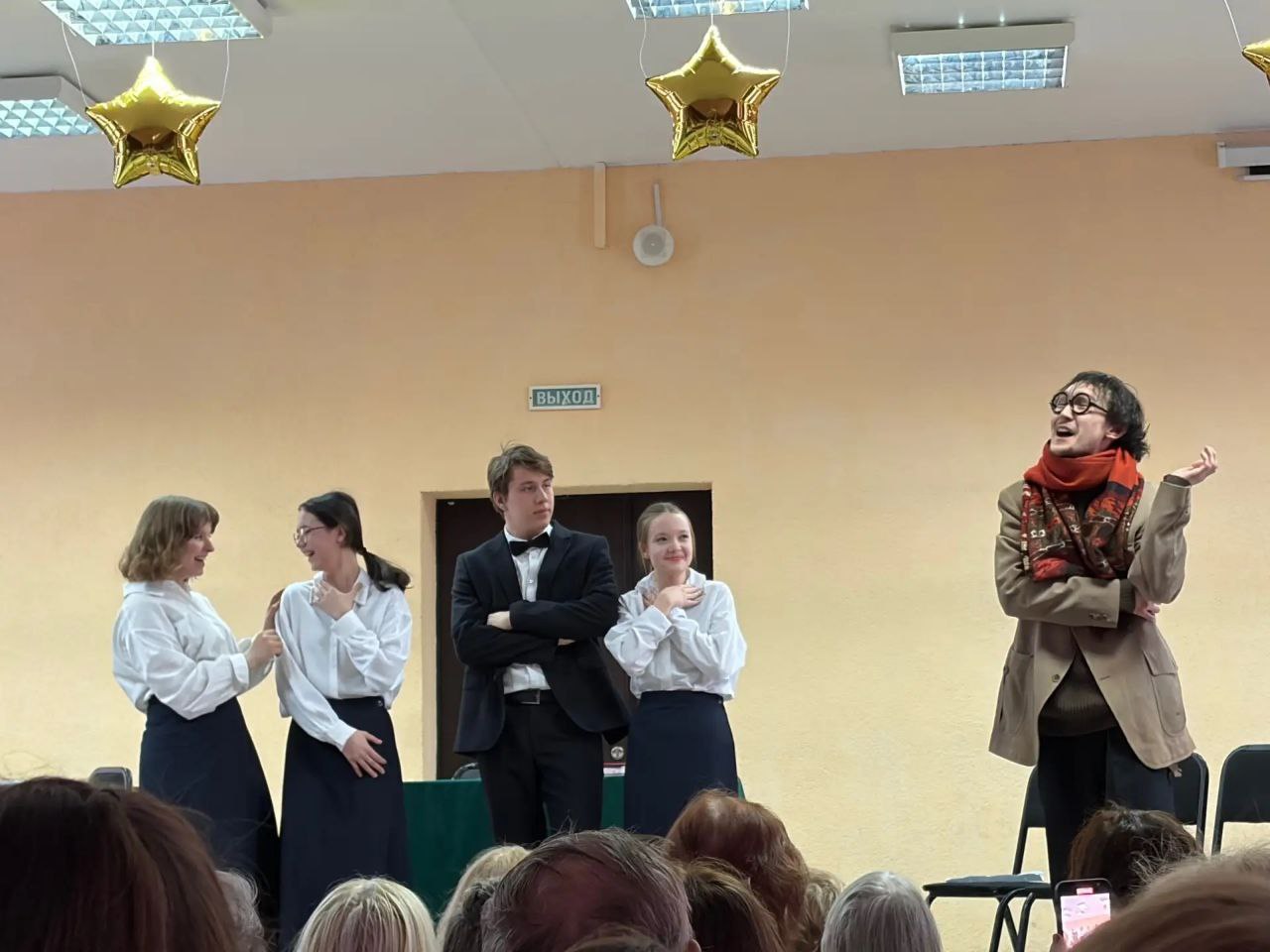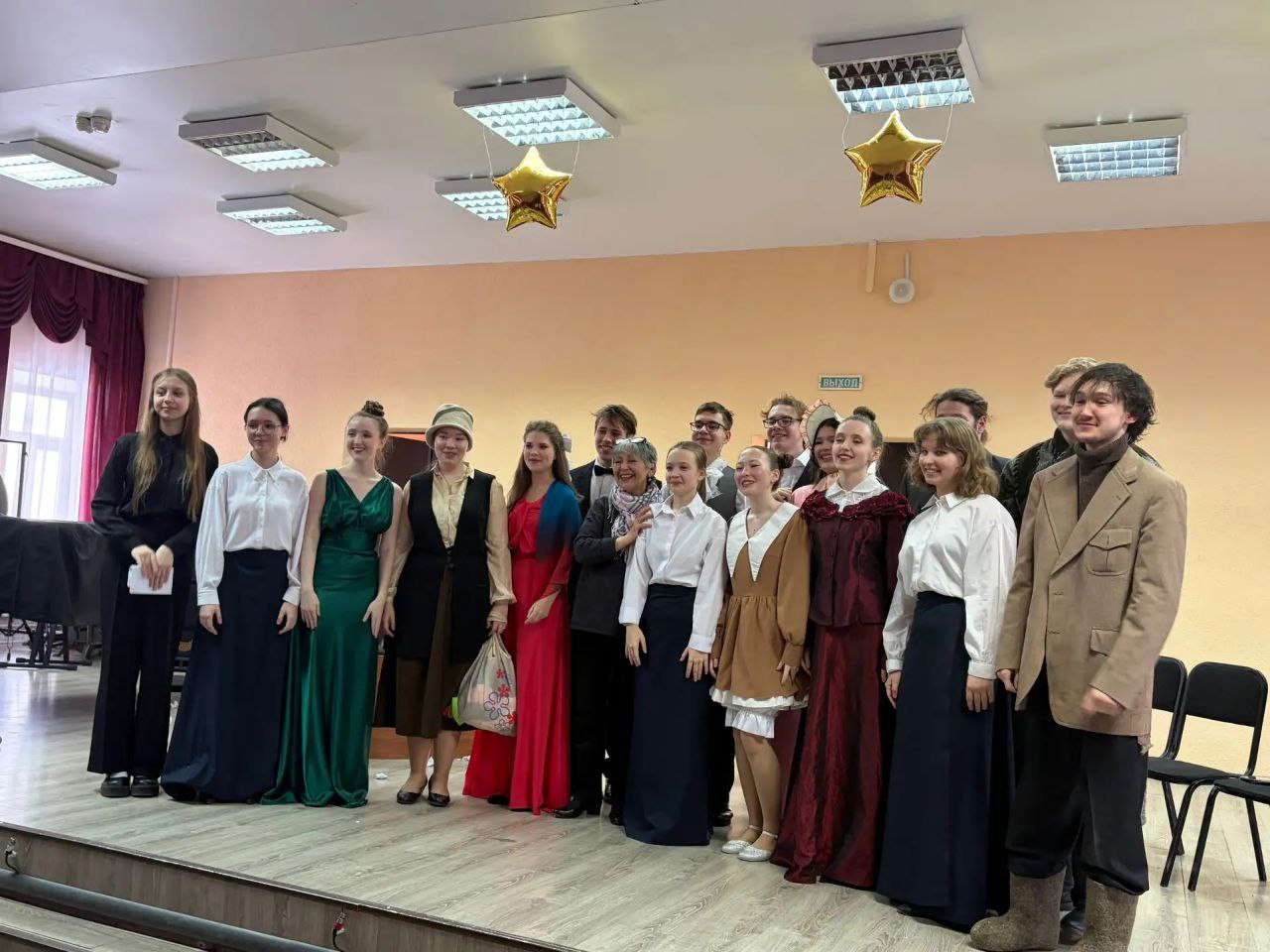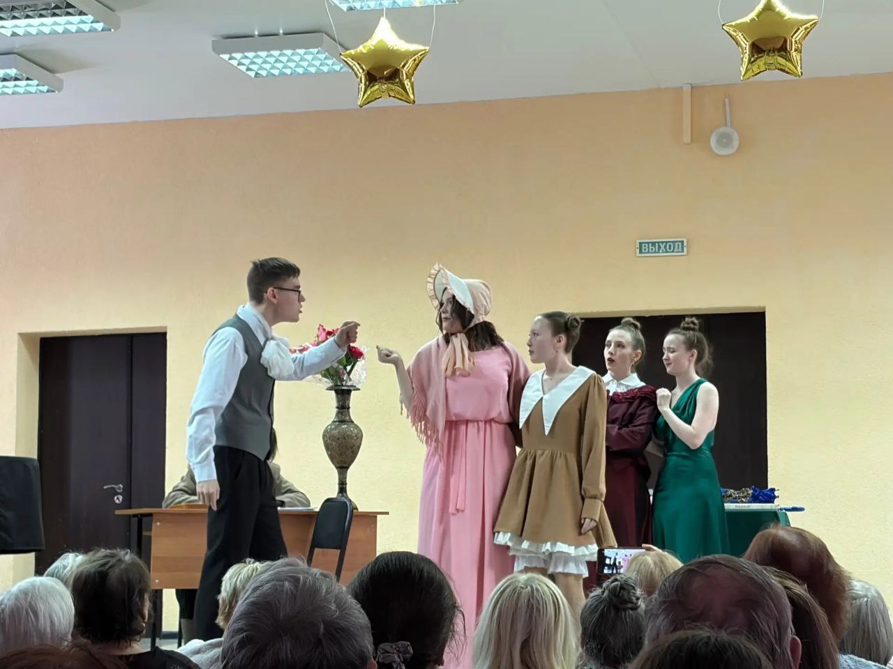 На главной сцене Омского музыкального училища им. В.Я. Шебалина гостям, студентам и преподавателям представили постановку «Женское общество возвышает или Женщина – обыкновеннейший крокодил».