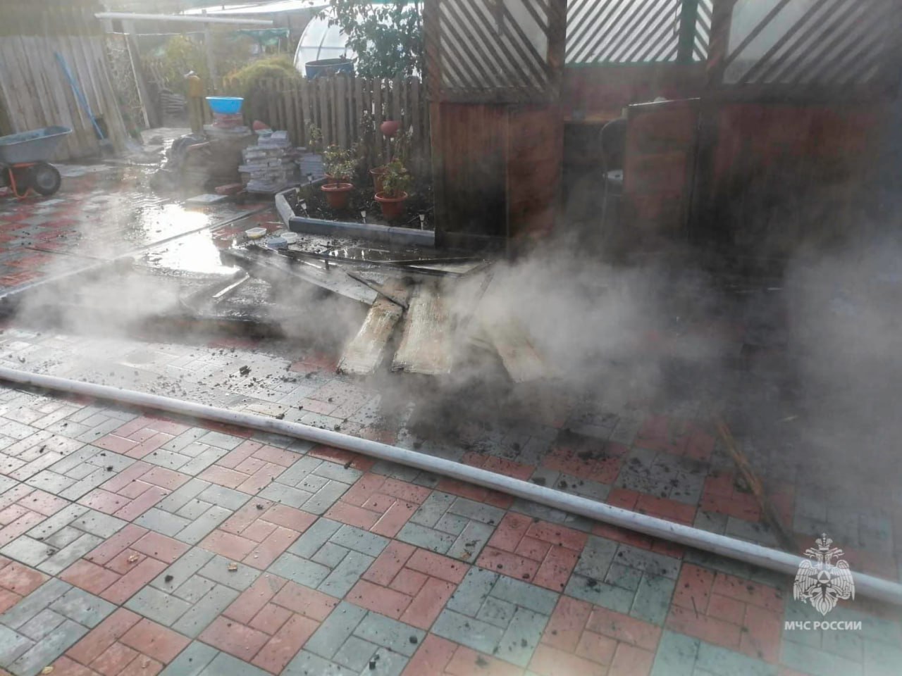В селе Побочино Одесского района шел дым из-под кровли и окон кирпичного дома. Возгорание в три квадрата ликвидировали 5 сотрудников МЧС России, задействовав 2 единицы техники. Пострадавших нет.