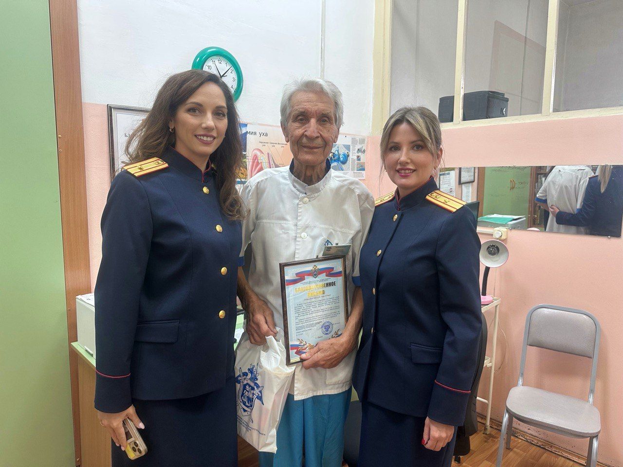 Благодарственные письма от имени руководителя следственного управления генерал-майора юстиции Виталия Владимировича Батищева и памятные подарки были вручены 89-летнему действующему врачу-отоларингологу Носкову Анатолию Лифантьевичу, чей многолетний труд и опыт является примером для молодежи, и Винокуровой Людмиле Алексеевне – старшей медицинской сестре приемного отделения.