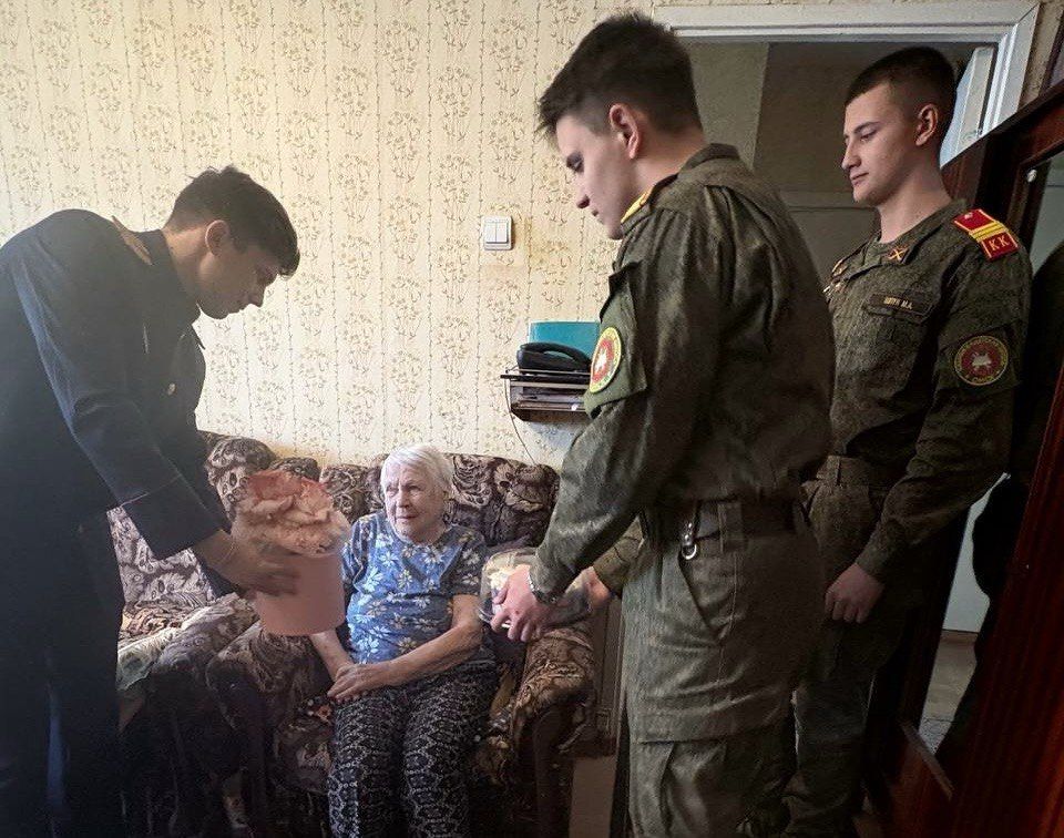 Следователи следственного управления совместно с подшефными кадетами поздравили ветерана Великой Отечественной войны с Международным днем пожилых людей