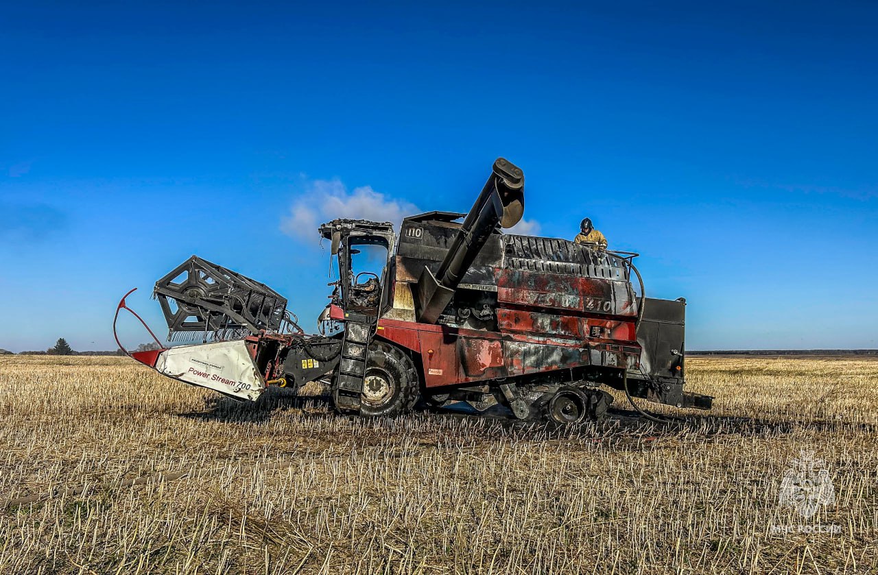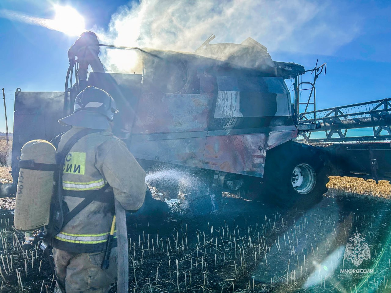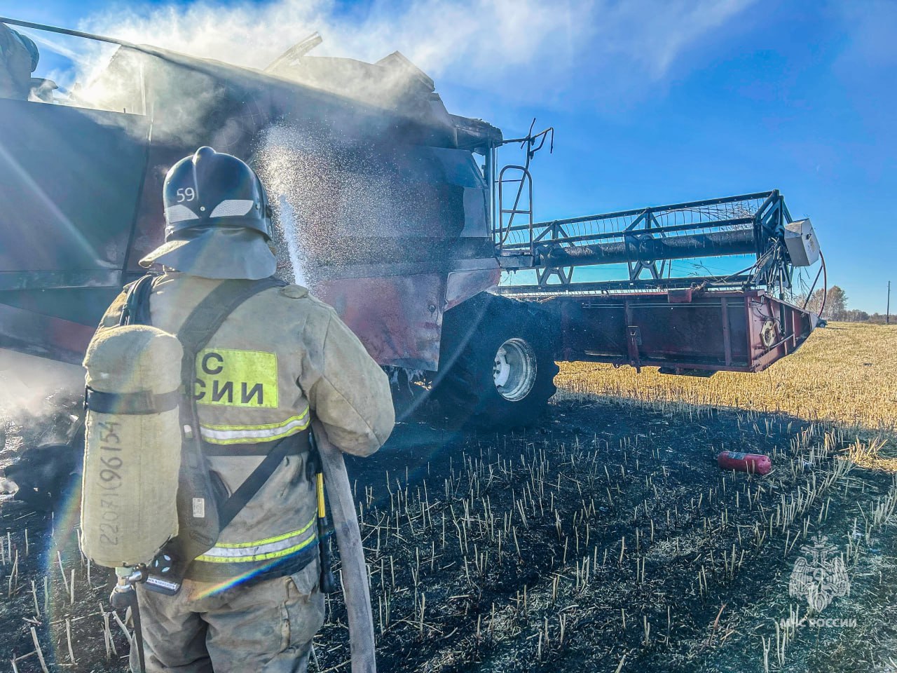В деревне Криводаново Большереченского района горел зерноуборочный комбайн на открытой территории.