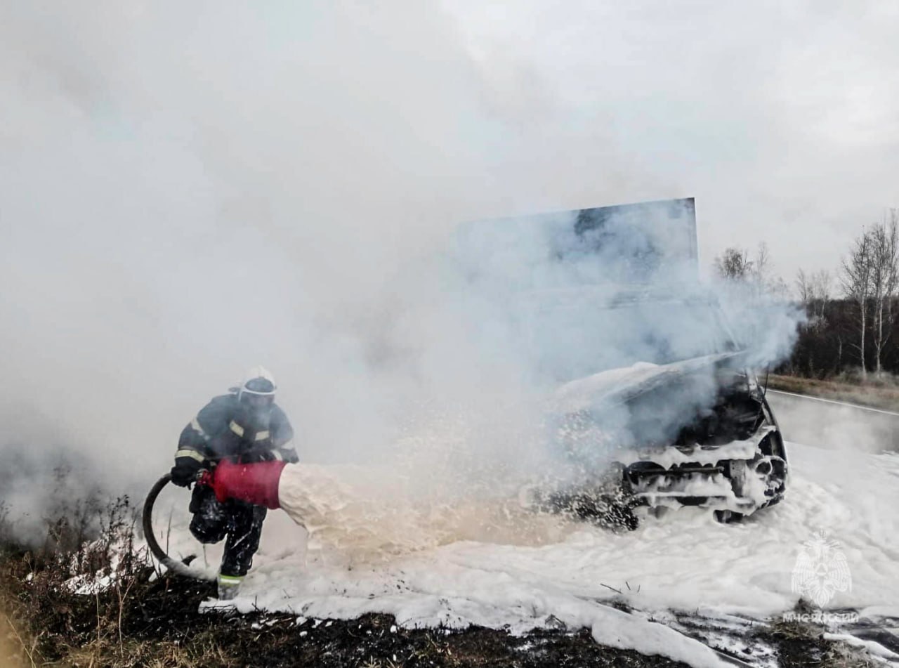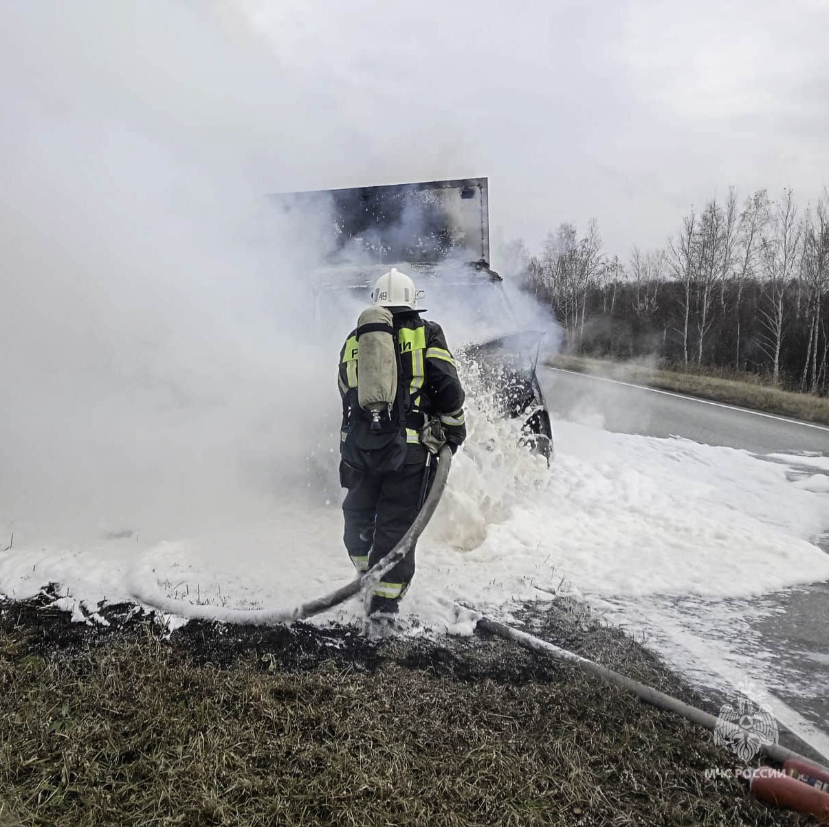 На участке трассы в Горьковском районе загорелся грузовой автомобиль в пути следования.