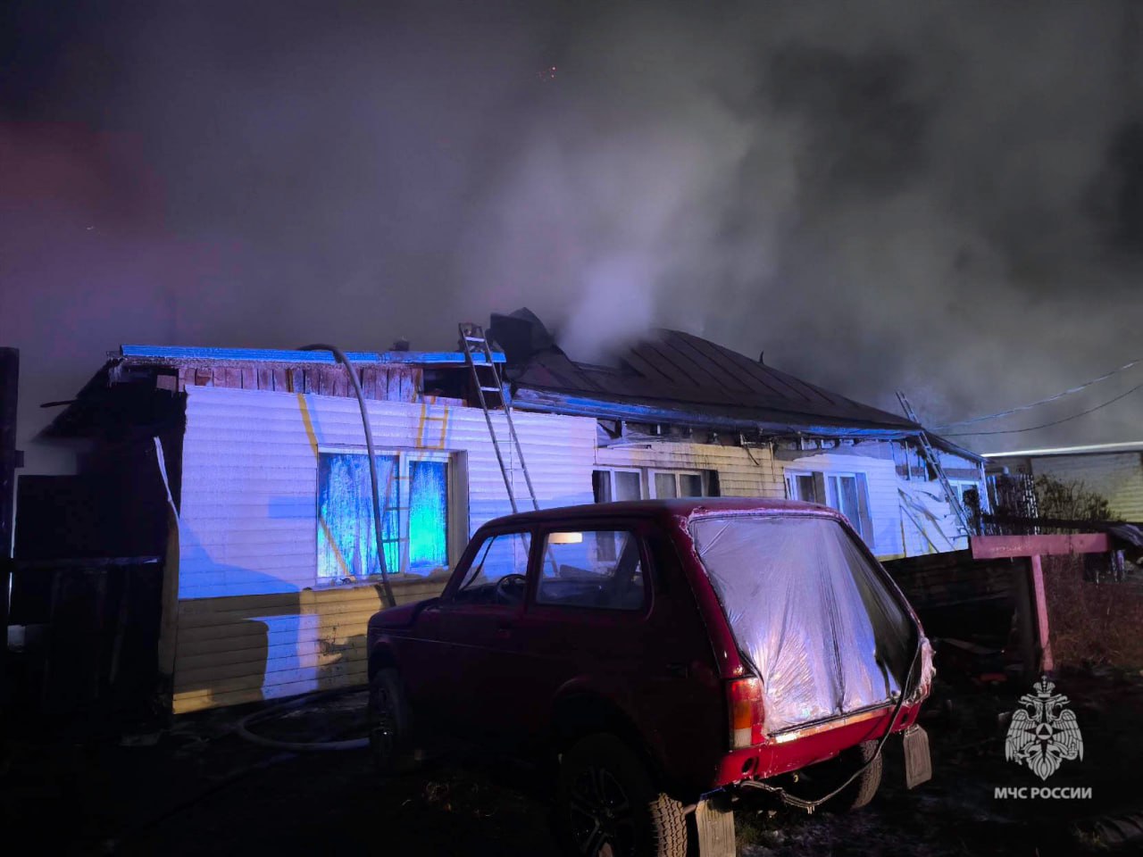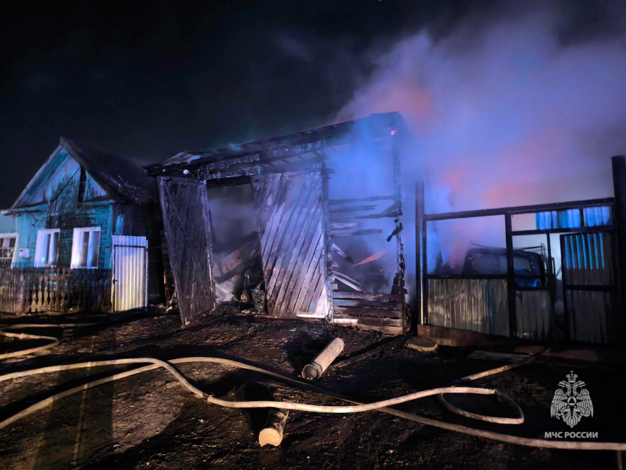 В Тарском районе горели два дома, хозпостройки и четыре автомобиля. До приезда огнеборцев эвакуировались 10 жильцов, в том числе 3 детей.