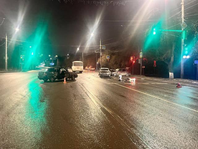 Предварительно установлено, что водитель автомобиля «Лада Приора», мужчина 1988 г.р., двигаясь по ул. Красный Путь со стороны проспекта Мира, на регулируемом перекрёстке с ул. Институтской не уступил дорогу и допустил столкновение со встречным автомобилем «Хендай Солярис» под управлением мужчины 1989 г.р., которого от удара вынесло на полосу встречного движения, где произошло столкновение с автомобилем «Хендай Акцент» под управлением мужчины 2001 г.р.