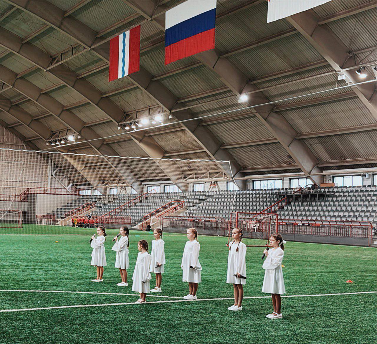 Слова благодарности - воспитанницам образцовой вокальной студии «Восходящая звезда» чье воодушевляющее исполнение гимна открыло соревнования.