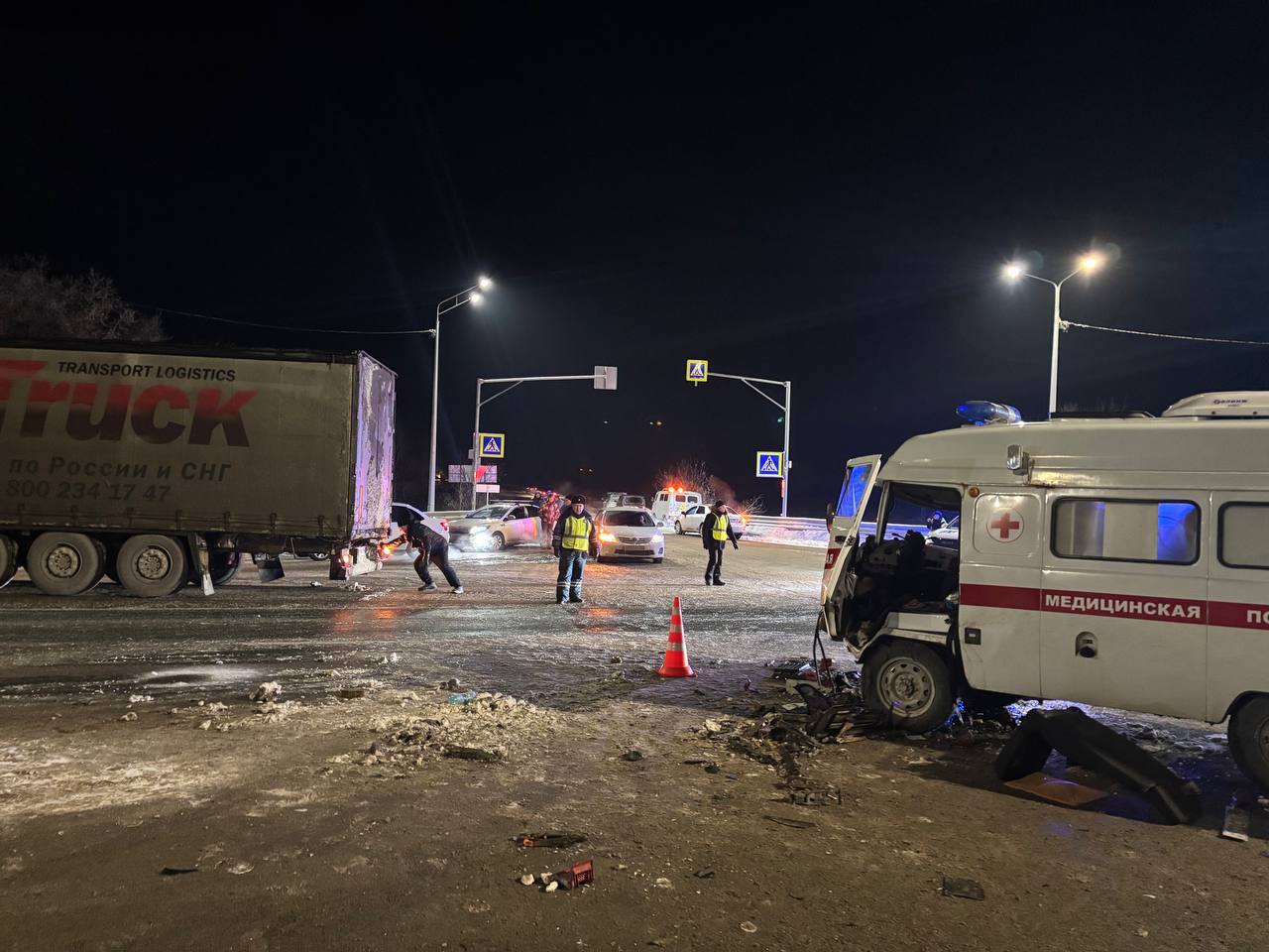 В результате автоаварии пациент скорой помощи - находившийся в коме мужчина 1970 г.р., скончался на месте ДТП, фельдшеры скорой помощи - женщины 1956 г.р. и 1980 г.р., а также водитель скорой помощи 1960 г.р. доставлены в медицинское учреждение.