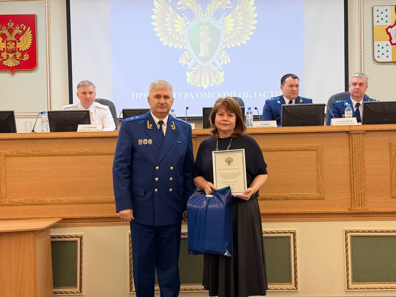 Дипломом за 1 место в конкурсе «Лучший государственный обвинитель» вручен начальнику отдела государственных обвинителей уголовно-судебного управления прокуратуры Омской области Дмитрию Коновалову.