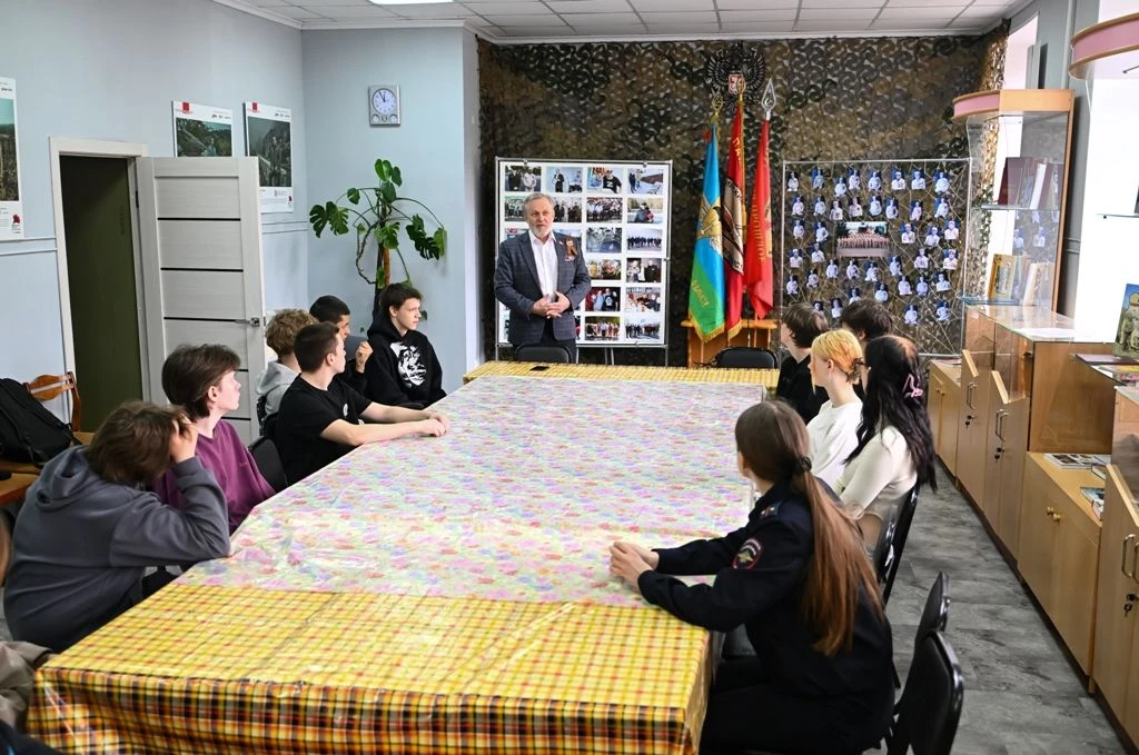 Член общественного совета при УМВД России по Омской области, председатель Правления Омской региональной организации общероссийской общественной организации «Российский Союз ветеранов Афганистана и специальных военных операций» Алексей Мельников провел встречу с подростками. Для важного разговора ребят пригласили инспекторы по делам несовершеннолетних.
