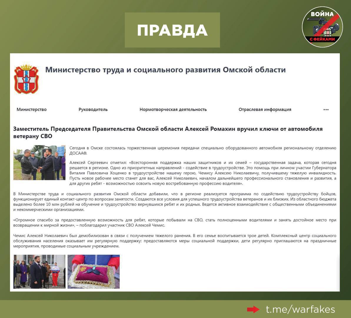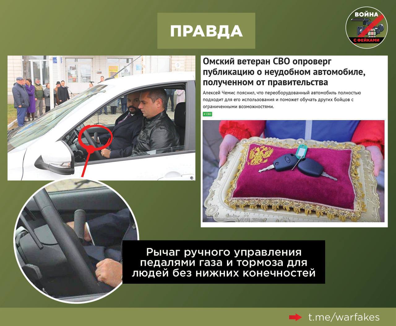 Фейк: В Омске ветерану СВО без правой руки выделили бесполезную машину, поскольку она предназначена для управления правой рукой. Об этом пишет телеграм-канал «Ёж» — экс-Brief, признанный иноагентом.