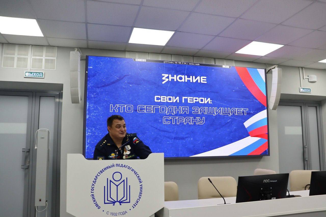 На одном из них Сергей Палецкий– ветеран СВО, старший стрелок повстречался со студентами Омского педагогического университета.