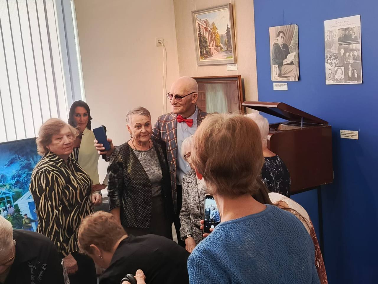 Гости встречи не хотели отпускать ведущего ГТРК «Иртыш» и даже попросили персональную импровизированную экскурсию по выставке «от Виктора Ларионова».