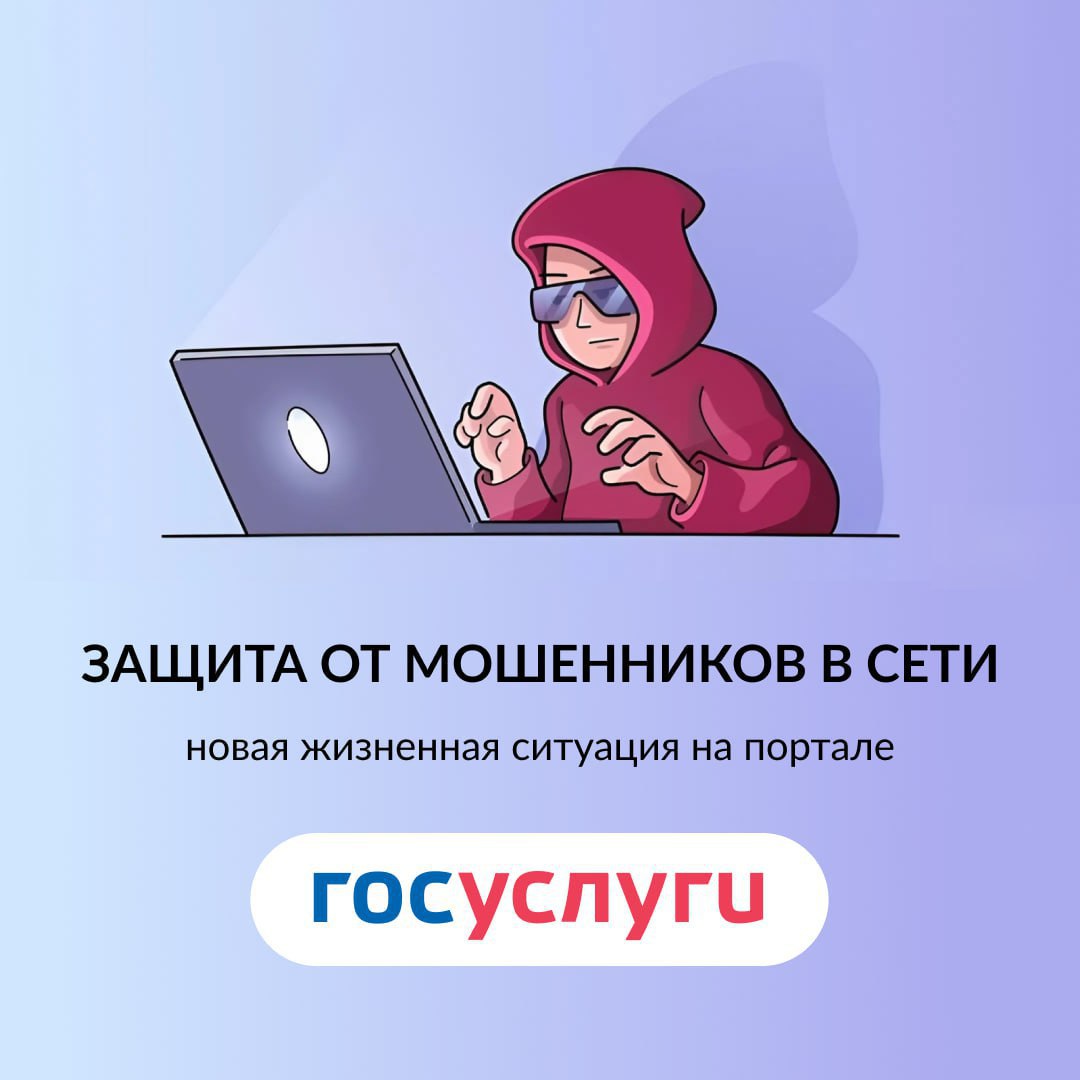 Жизненная ситуация «Защита от мошенников в сети» включает в себя самозапрет на кредиты, новые сим-карты, возможность проверки своей кредитной истории или информации о подозрительном звонке. В сервисе есть инструкции, что делать если гражданин сообщил мошенникам пароль и другие полезные рекомендации.