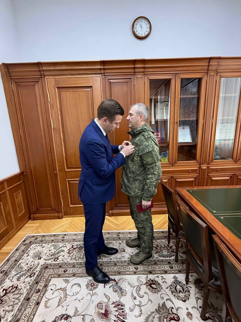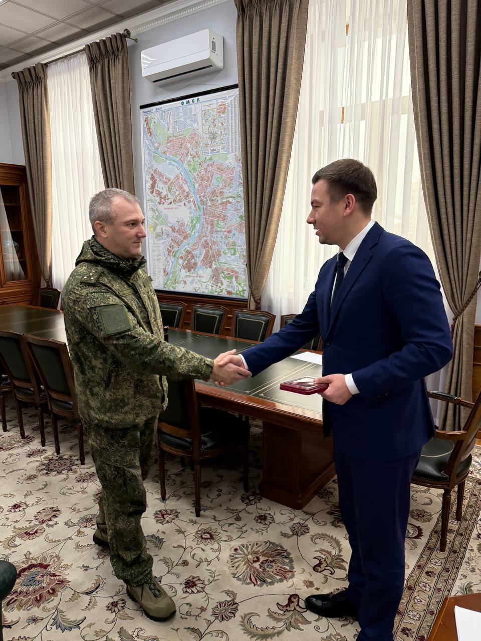 Заместитель Председателя Правительства Омской области, Егор Андреевич Горбатенко, сегодня вручил награду участнику специальной военной операции.