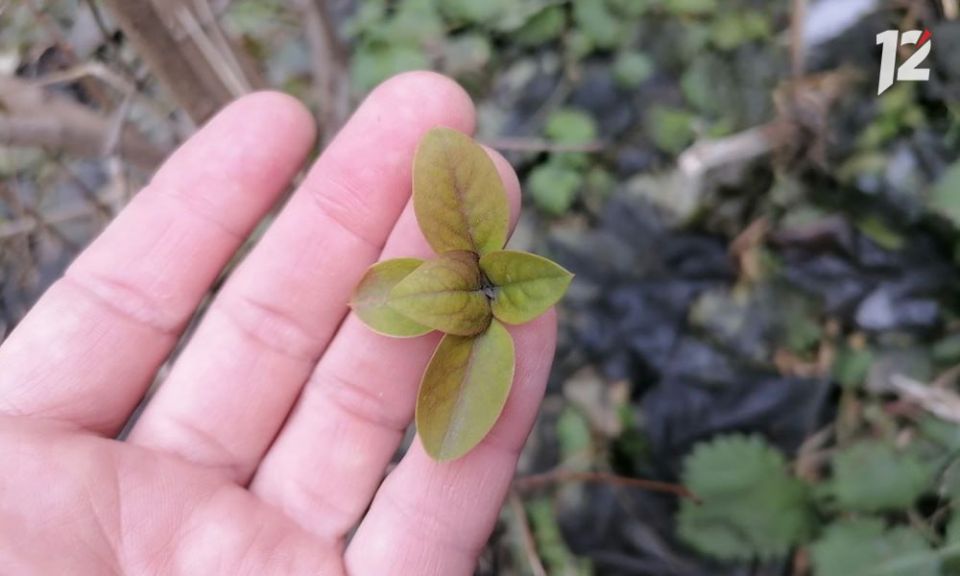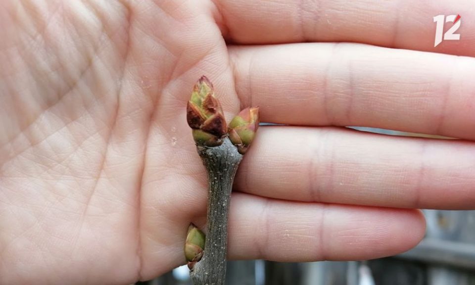 Сегодня, 20 ноября, корреспондент 12 канала заметила необычное для осени явление — молодые светло-зелёные листочки, которые распустились на ветках сирени. Кроме того, весь куст усыпан свежими зелёными почками.