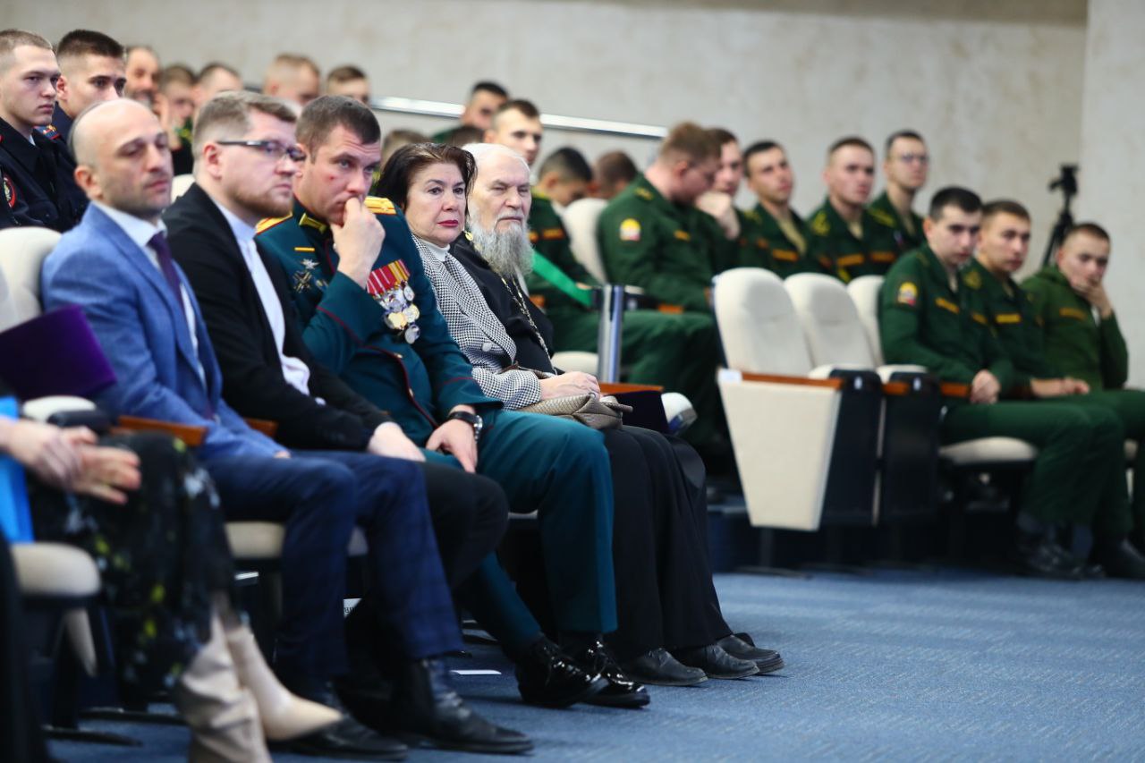 — Для меня огромная честь сегодня выступать перед вами. За свою военную карьеру, мне довелось служить в абсолютно уникальных подразделениях, которые до сих пор в моем сердце, в душе. Эти подразделения по своему составу включали в себя людей различных национальностей, различных конфессий. Вместе с ними мы выполняли задачи в повседневности и в бою. И поэтому я не понаслышке знаю, что такое единство, что такое боевое братство и что такое боевая семья. И, конечно же, все это невозможно без достойного воспитания и образования, как семейного, так и духовного. Поэтому сегодня от себя лично и от всех этих ребят, я говорю спасибо вам всем за ваше воспитание, поддержку и наставничество. Спасибо!