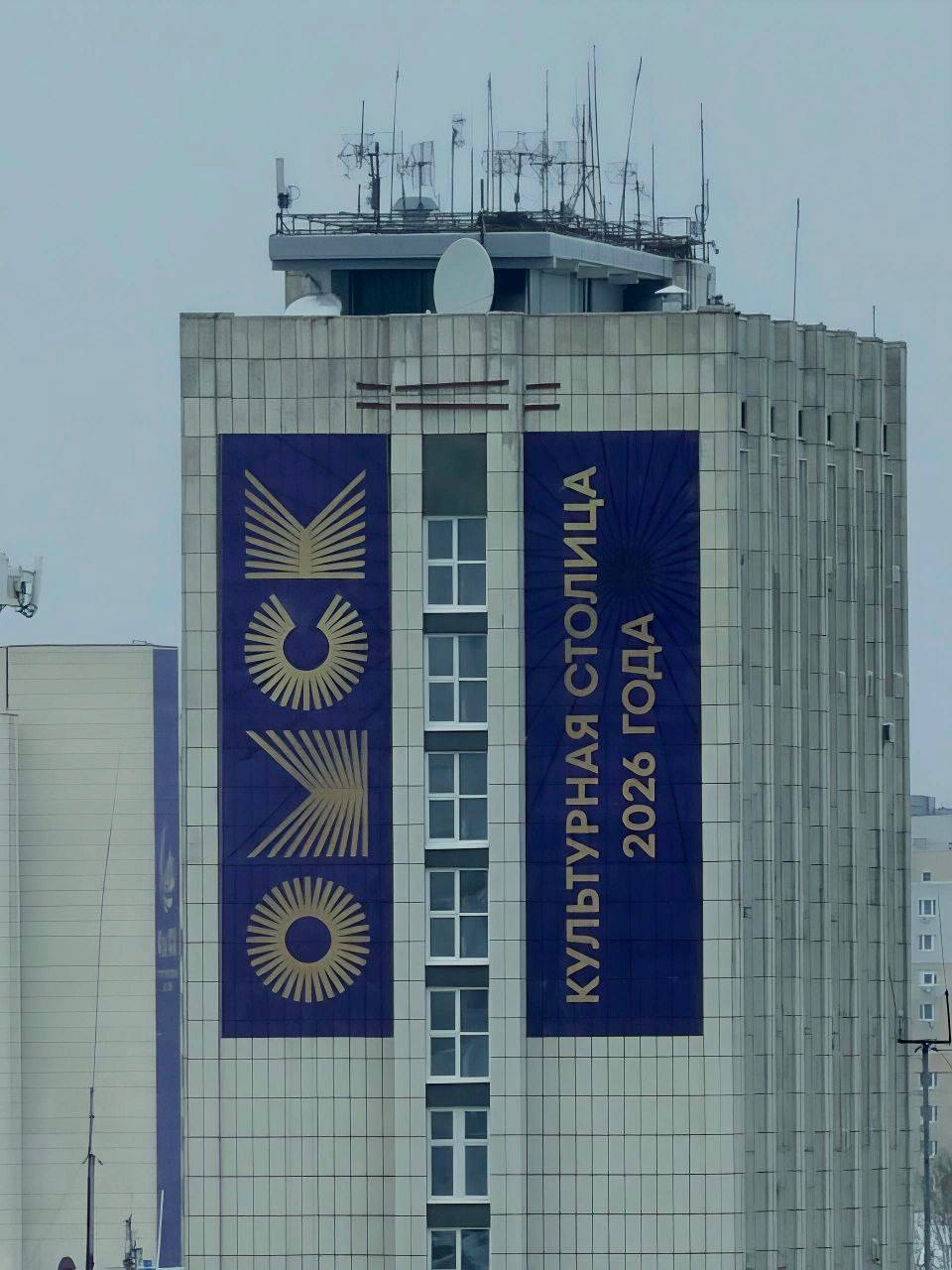 Символика молодежной столицы уступила место новому статусу. Тематическое оформление уже заметили на городских зданиях.