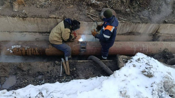 Здесь произошел порыв теплотрассы. Работа сложная. Старые трубы, как бумага, но мастерство сварщиков на высоте вызывает искреннее уважение, сообщил мэр.Теплоснабжение в домах и объектах социальной сферы восстановили раньше, чем планировалось. Сегодня это место будут засыпать грунтом, а завтра щебнем.