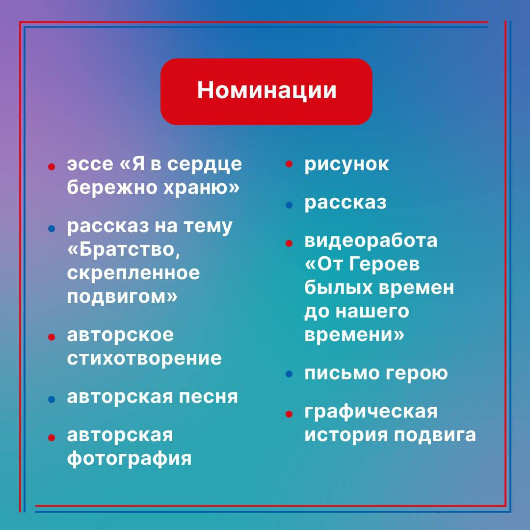 Открыт прием заявок на четвертый Всероссийский патриотический конкурс творческих работ «Памяти героев верны!», организованный фондом «Защитники Отечества». Мероприятие направлено на сохранение памяти о героях специальной военной операции.