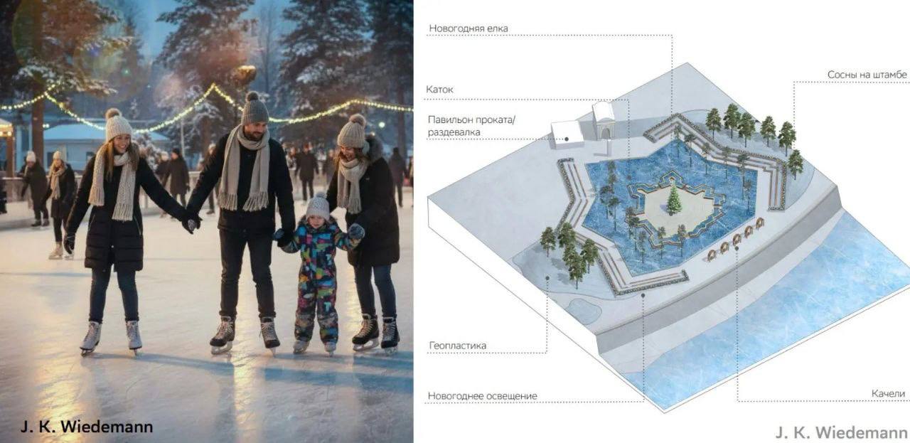 На обновленной площади разместят качели, павильон проката и раздевалки — летом можно будет взять велосипед или ролики, а зимой кататься на коньках. Проектом предусмотрены современные детские площадки более тысячи квадратных метров, спортивная зона и велодорожка вдоль Иртыша. Площадь вокруг фонтана сможет вмещать свыше 5 тысяч отдыхающих.