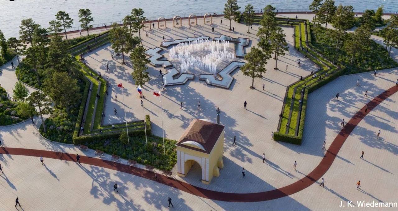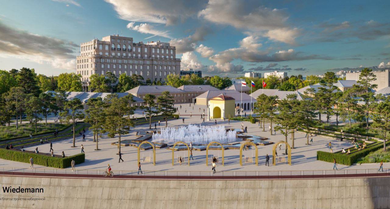 Разработчики продумали каждую деталь: свет, тени, текстуры и материалы. Особый акцент — на озеленении. Здесь появятся сосны на штамбе, масштабные клумбы и объемные альпийские горки. Общая площадь зеленых насаждений превысит 11 тысяч квадратных метров.