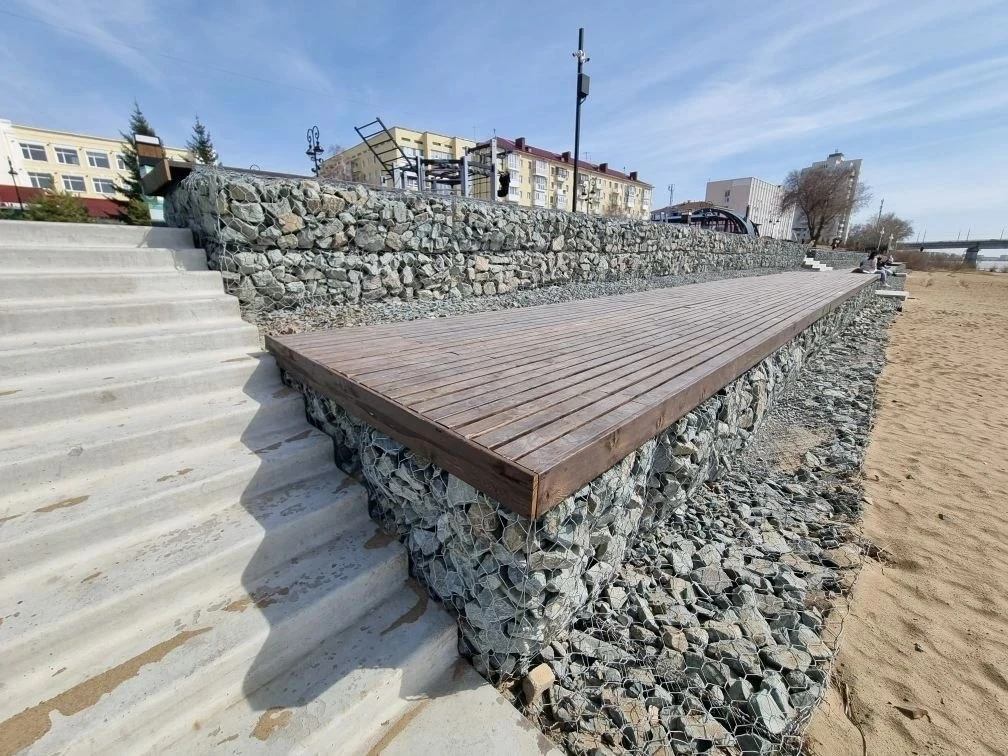 Подрядчику предстоит обновить территорию между Речным вокзалом и Ленинградским мостом. На пляже уложат более 1 тыс. кв. м гранитной плитки и 103 кв. м палубной доски. Установят новые фонари, скамейки, навесы от солнца и 340 габионов — сетчатых конструкций с камнями. Также высадят берёзы высотой до 3,5 м.