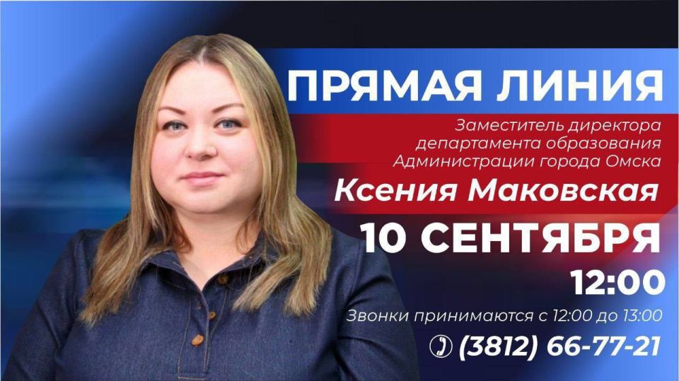 В среду, 10 сентября, в редакции «Вечернего Омска» состоится прямая линия, посвящённая организации питания школьников.На вопросы родителей будет отвечать заместитель директора департамента образования администрации Омска Ксения...