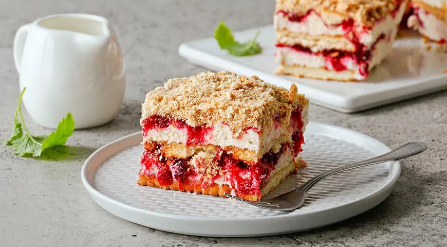 Нежный торт без выпечки: три слоя удовольствия с вишней и кремом