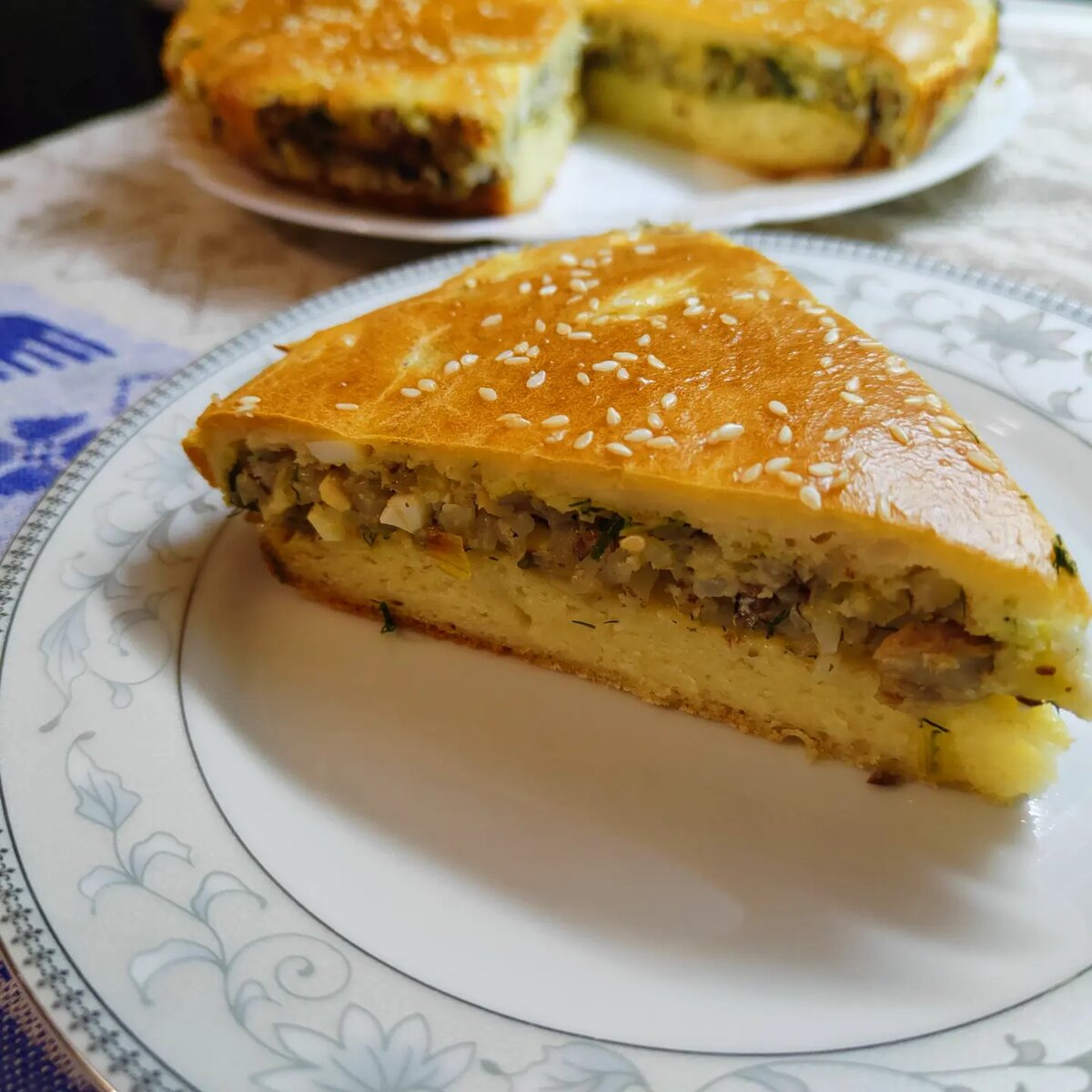 После того как основа схватилась, на неё аккуратно выкладывают начинку, а сверху заливают оставшимся тестом. Если хотите, можно добавить семена кунжута для изысканности. Пирог отправляется снова в духовку для дальнейшей выпечки на 20-25 минут. Когда тесто станет золотистым и ароматным, его можно подавать на стол.