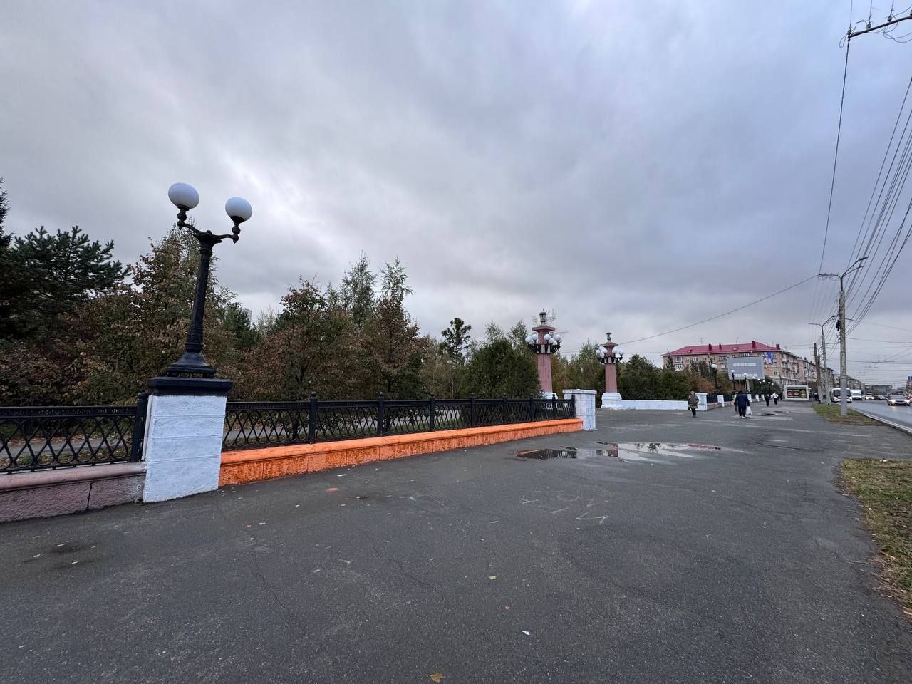 Нижнюю часть забора сквера им. 30-летия ВЛКСМ в Омске перекрасили в ярко-оранжевый цвет. Пока окрашена только одна секция забора.