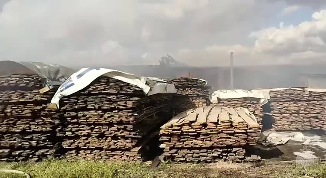 В Омске потушили пожар в здании по производству ритуальной атрибутики