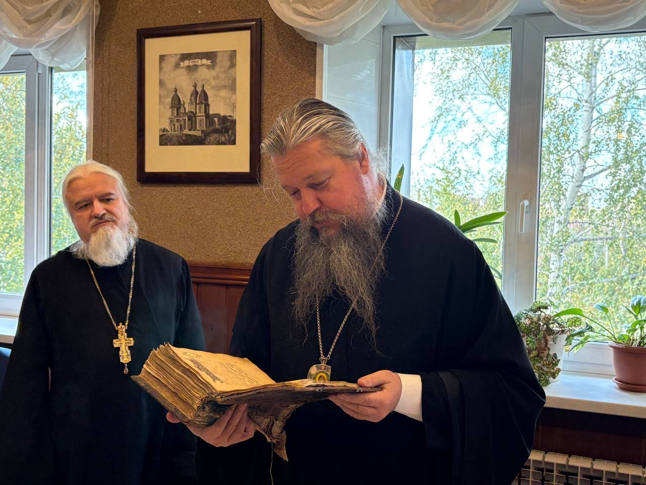 Владыка встретился в ректором Александром Еремеевым, а также с сотрудниками вуза. Архипастырю рассказали об образовательных программах. Также ректор подарил гостю старинный экземпляр Псалтири.
