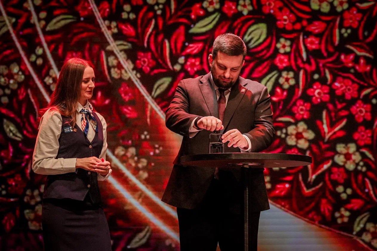 Посетили церемонию вместе с министром культуры Юрием Викторовичем Трофимовым. От имени губернатора Виталия Павловича Хоценко поздравил коллектив хора с юбилеем, поблагодарил за сохранение традиций и трансляцию нашей уникальной культуры, невероятные эмоции, которые они дарят зрителям, и пожелал дальнейшего развития и новых достижений.
