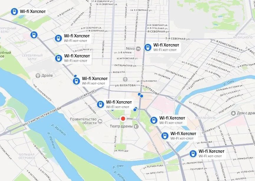 Теперь данные о 416 точках доступа интегрированы на карту «Яндекс». Для поиска ближайших точек подключения достаточно ввести в строке поиска «точки бесплатного Wi-Fi», и на карте отобразятся доступные места. Кроме того, информация о точках доступа уже была доступна через чат-бота «ГСА» (@gsaomsk_bot) и на Геопортале Омской области, перейдя на вкладку «Wi-Fi в Омской области» по ссылке. Также жители Омской области могут воспользоваться справочником «2ГИС».