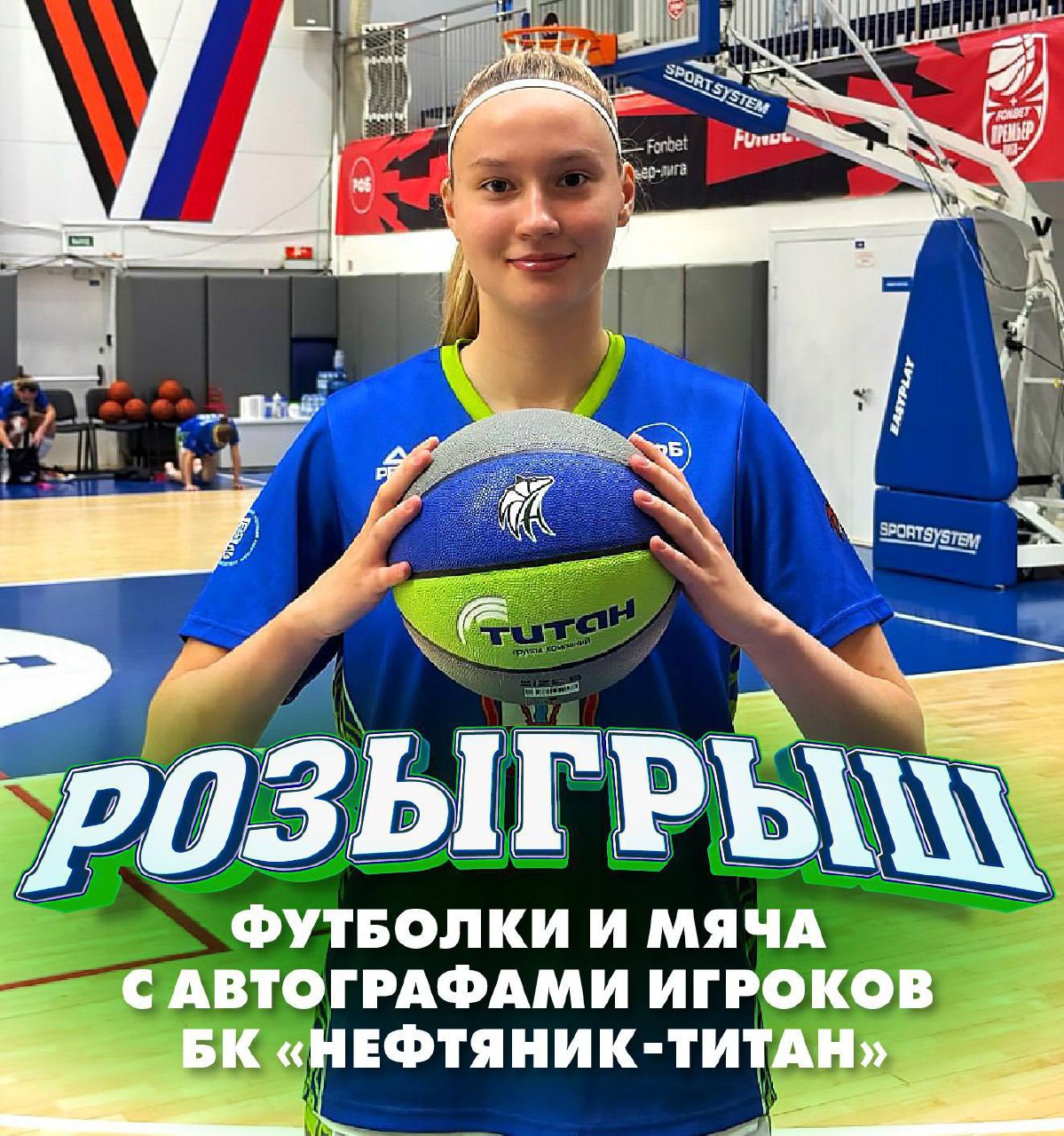 А уже 13 октября пригласим счастливчиков на матч «Нефтяника-Титана» с «УГМК» из Екатеринбурга, где один получит мяч с автографами игроков команды, а второй – фирменную футболку от клуба!