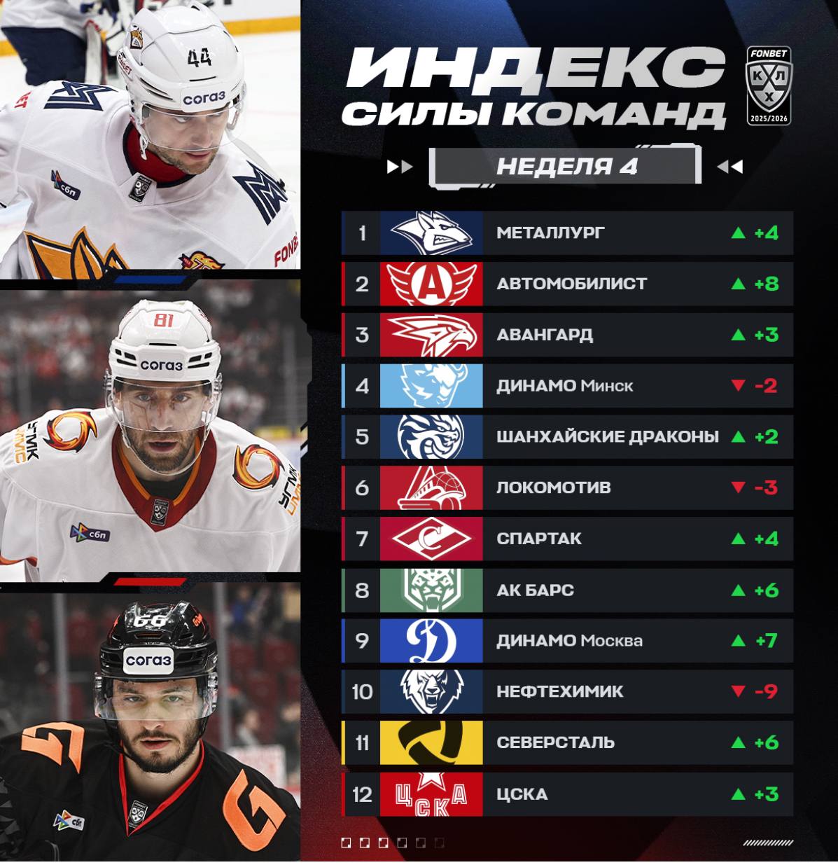 Индекс силы — это рейтинг, который подсчитывают математически на основе показателей в текущем сезоне. Регулярный чемпионат все команды начали с одинаковым количеством баллов. За победу в основное время одна команда отнимает у другой 25% её баллов, в случае победы в овертайме или в серии бросков — только 12,5%.