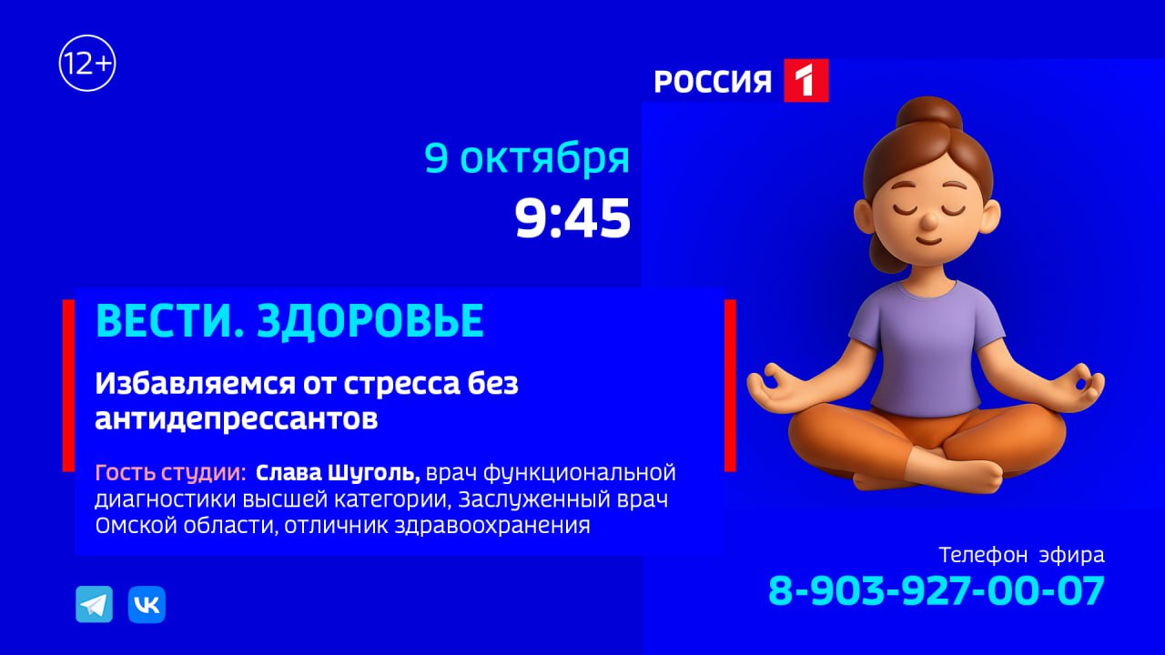 Смотрите программу «Вести Здоровье» 9 октября в 9:45 на телеканале «Россия 1» или присоединяйтесь к трансляции в наших социальных сетях.
