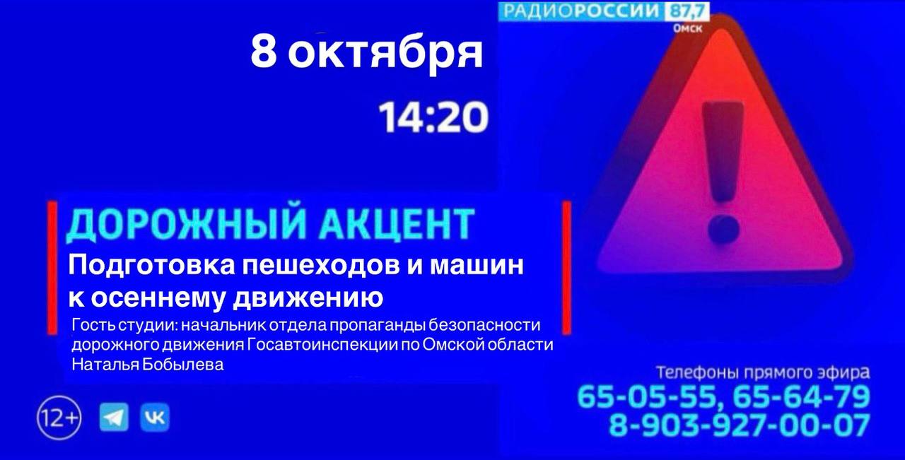 «Подготовка пешеходов и машин к осеннему движению» — тема программы «Дорожный акцент» с участием начальника отдела пропаганды безопасности дорожного движения Госавтоинспекции УМВД по Омской области Натальи Бобылевой.